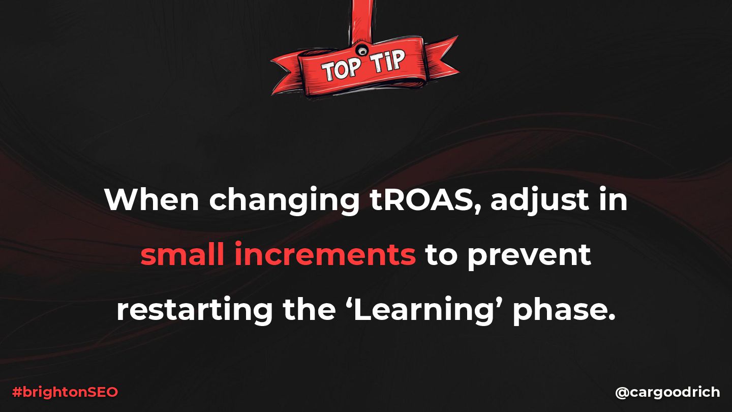 9. When changing tROAS, adjust in small increments to prevent restarting