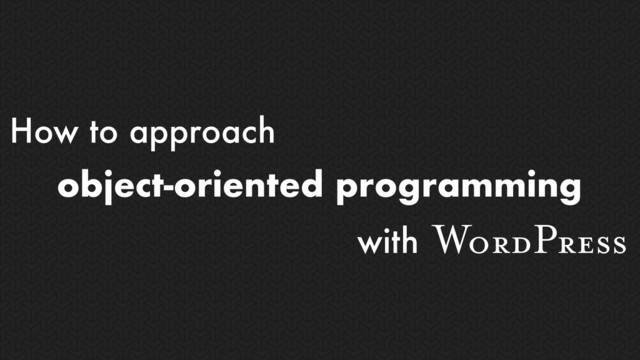 We'll start by going over the prevalent class design in the WordPress ecosystem. We'll analyze what it's doing and why it leaves you feeling unsatisfied.