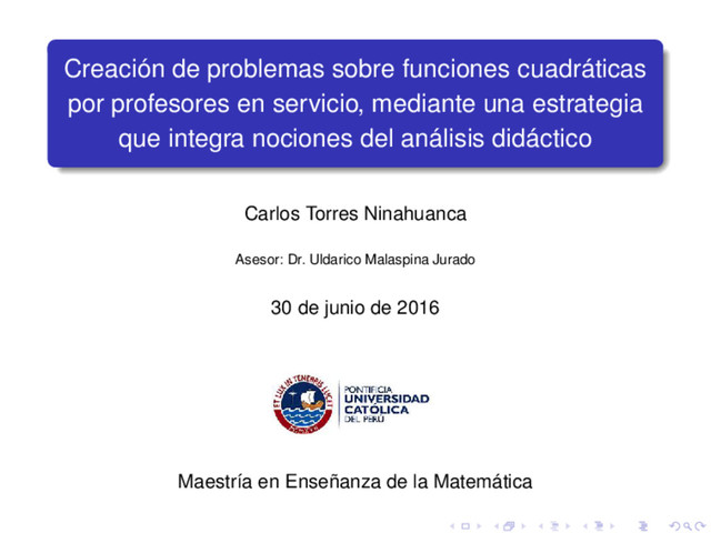 mediante una estrategia que integra nociones del análisis didáctico Carlos Torres Ninahuanca Asesor: Dr. Uldarico Malaspina Jurado 30 de junio de 2016 Maestría en Enseñanza de la Matemática