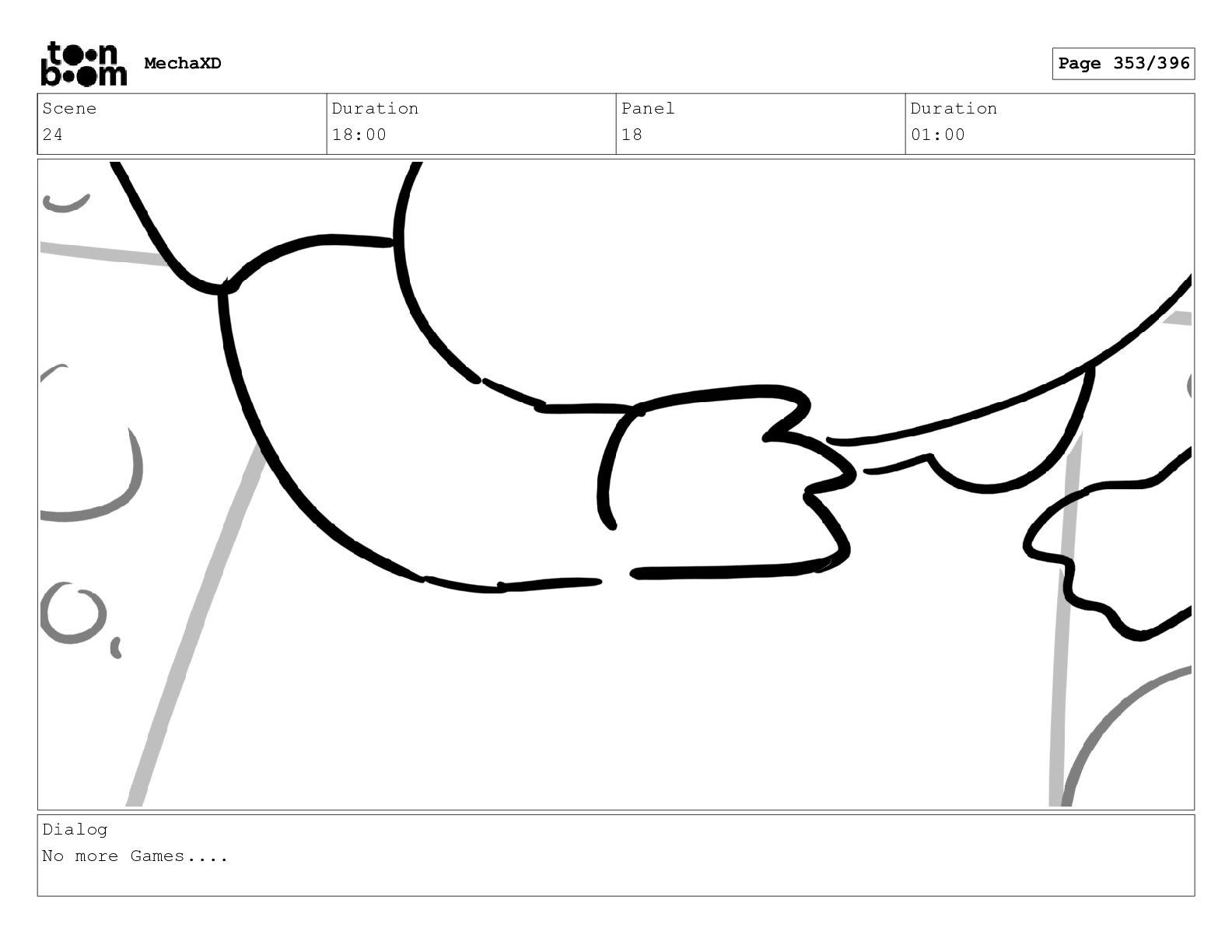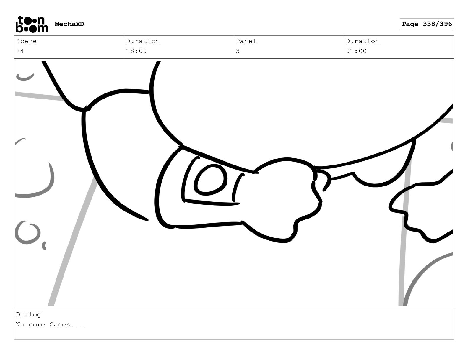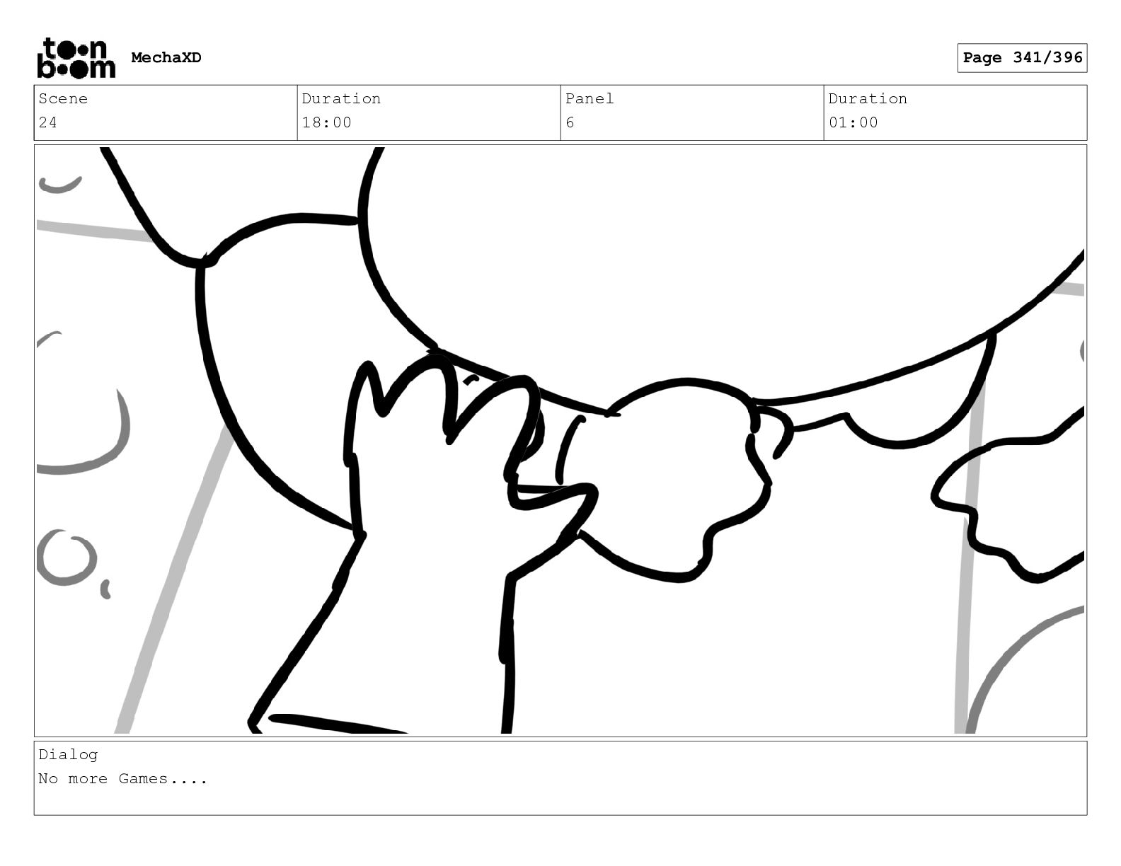 Scene 24 Duration 18:00 Panel 18 Duration 01:00 Dialog No