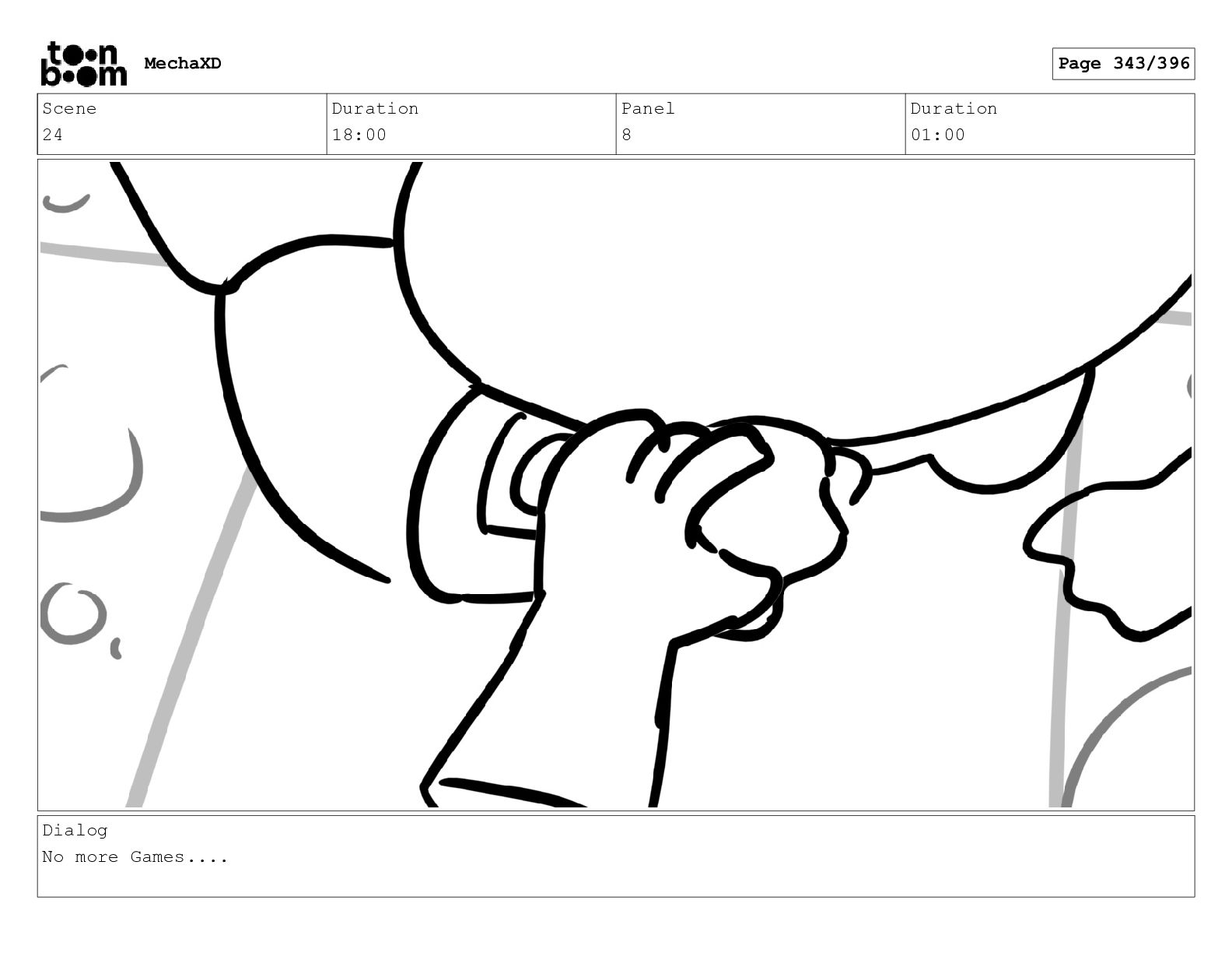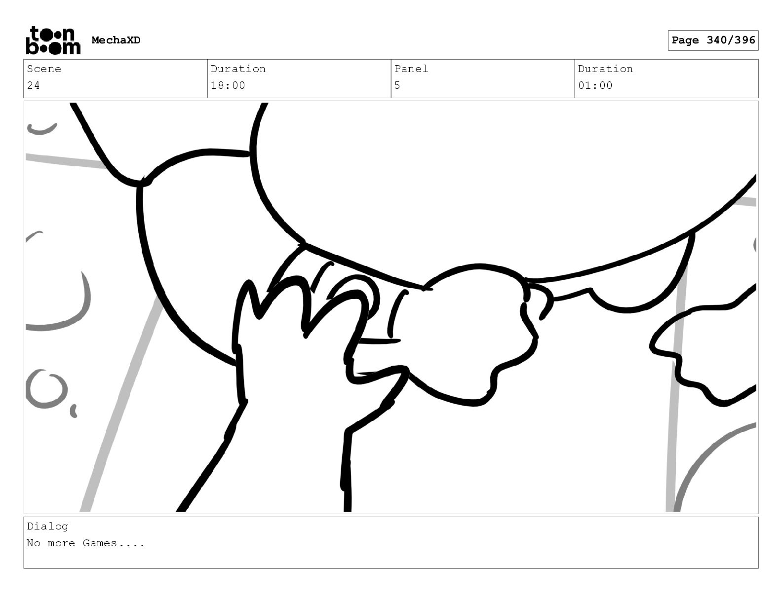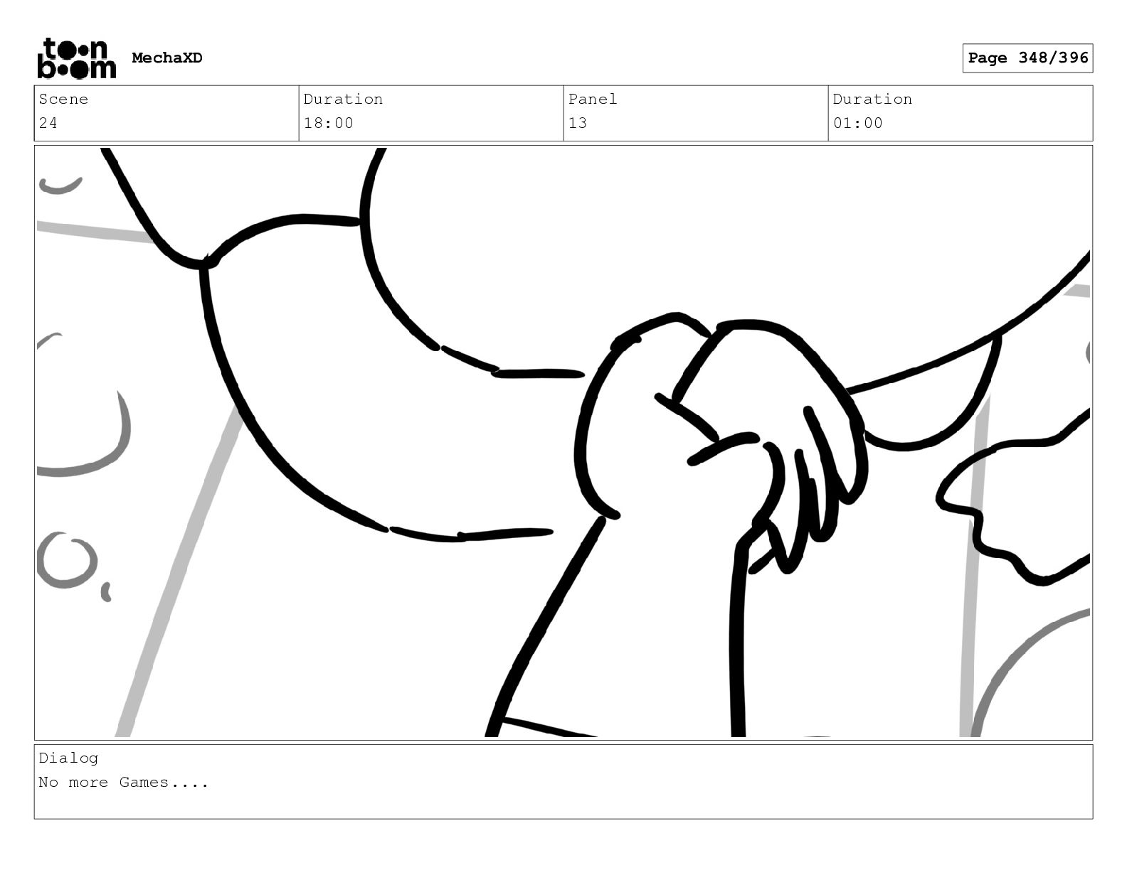Scene 24 Duration 18:00 Panel 18 Duration 01:00 Dialog No