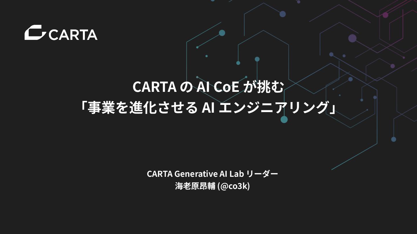 CARTAのAI CoE が挑む「事業を進化させる AI エンジニアリング」 / carta ai coe evolution business ai engineering