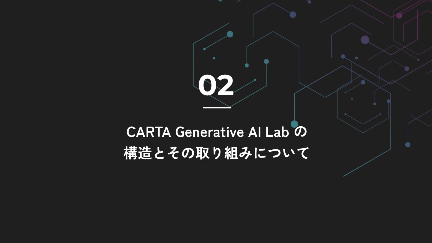 AI リテラシーと技術基盤を 底上げする⽀援機能 事業部の重要課題に深く⼊り込み、 PoC 開発から実装までを担う実⾏機能 AIとエンジニアリングの⼒で CARTA の事業価値向上を加速 存在意義 0 1 02 内包する機能