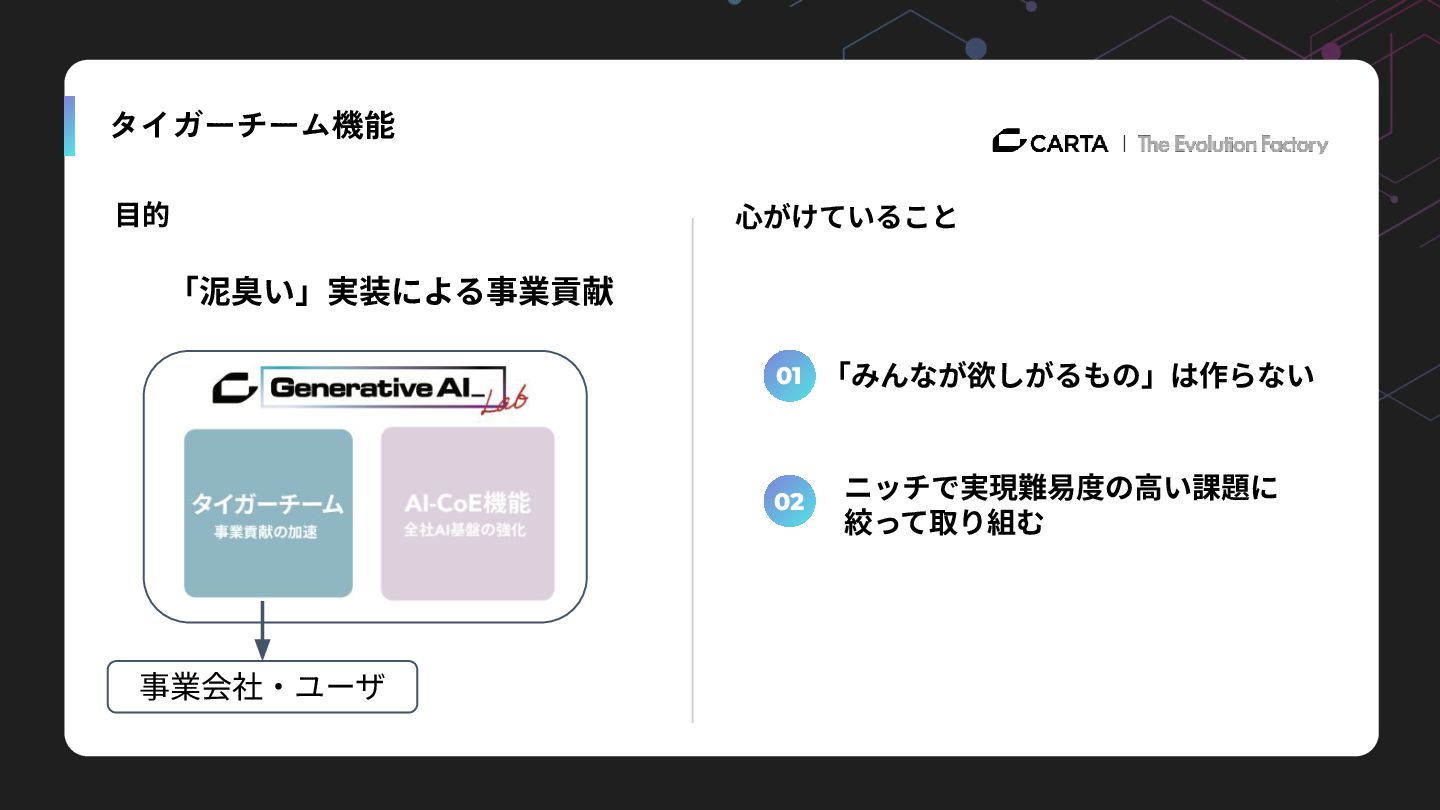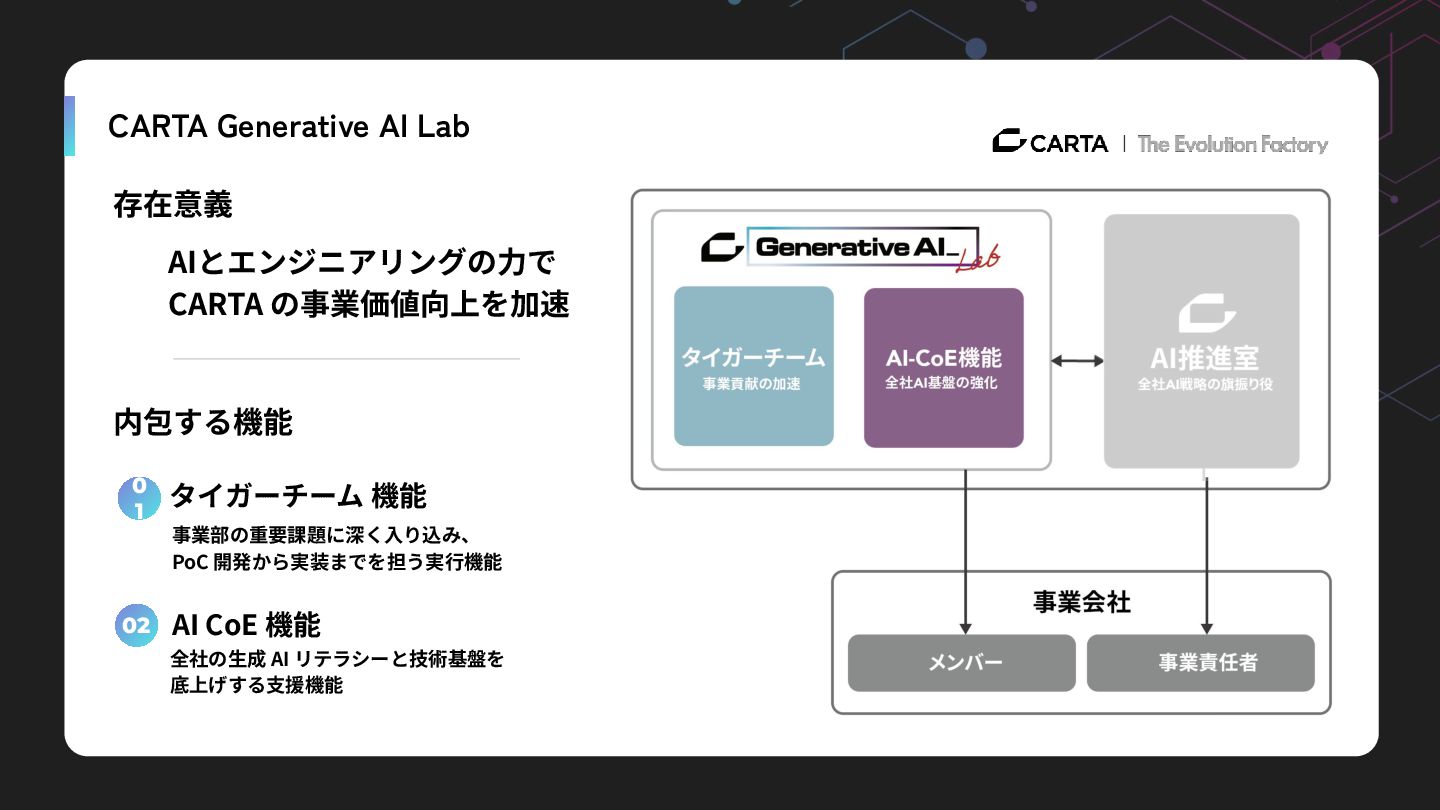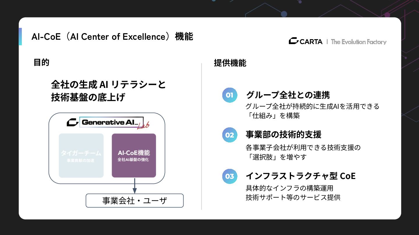 8. CARTA Generative AI Lab タイガーチーム 機能 AI CoE 機能 全社の⽣成