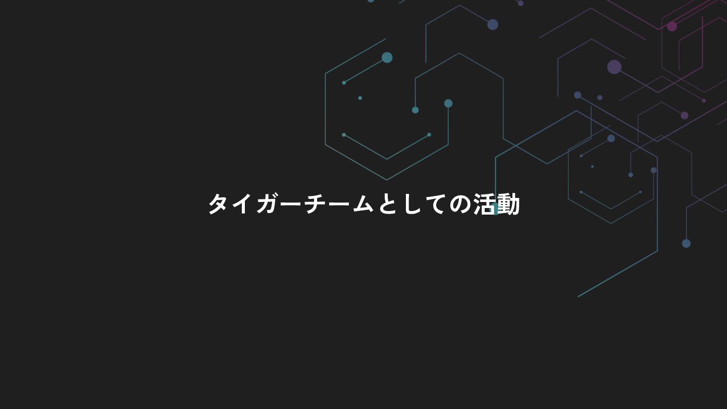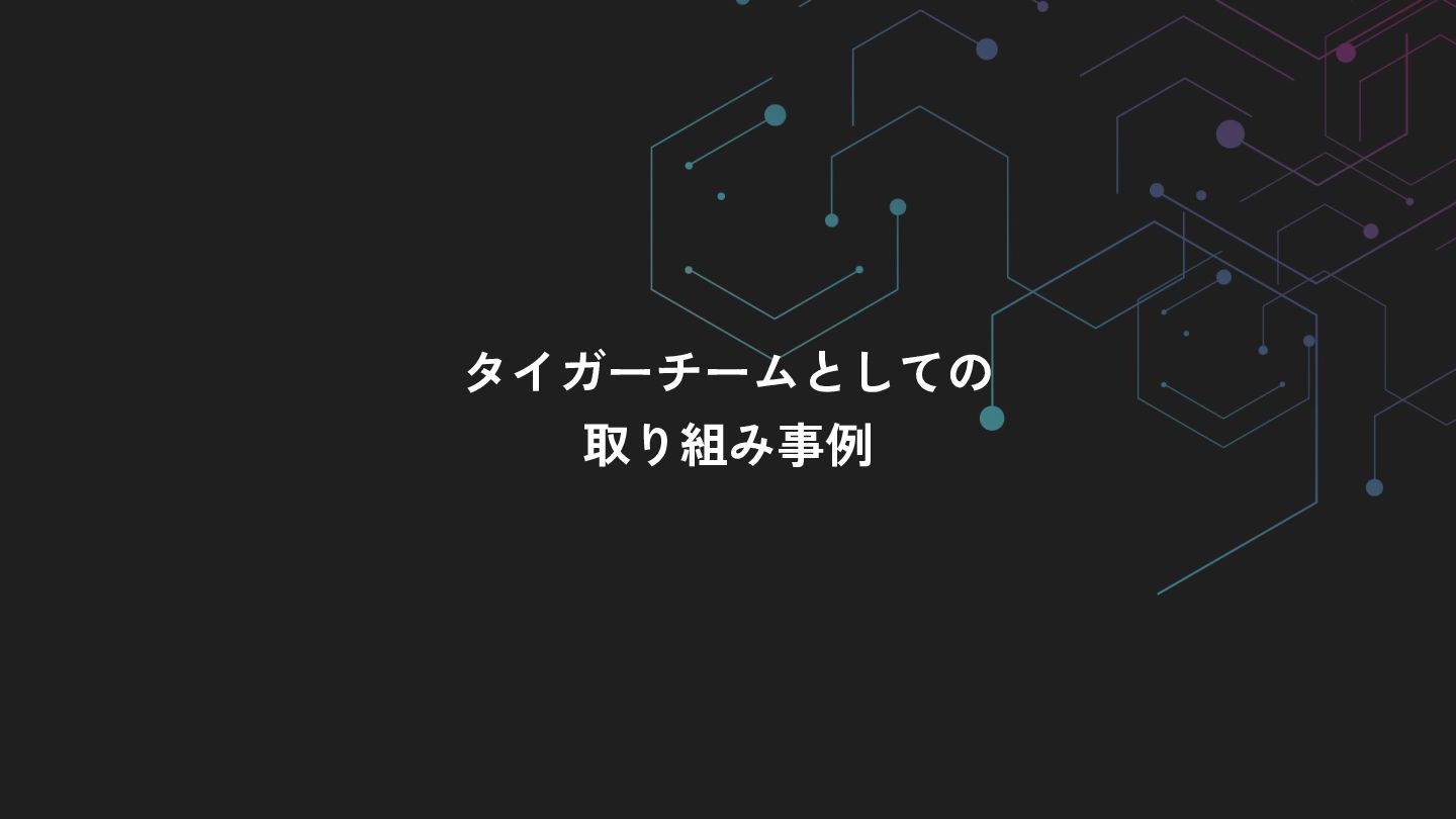 タイガーチームは このあたりの 課題を狙う この辺の課題は 世の中で 解決されることを 期待 このあたりの課題が CARTA 全体で解けるように AI-CoE による基盤構築 ドメインエキスパート⾃⾝ での Dify 等による PoC タイガーチームとして 本格利⽤に向けた アプリケーション開発