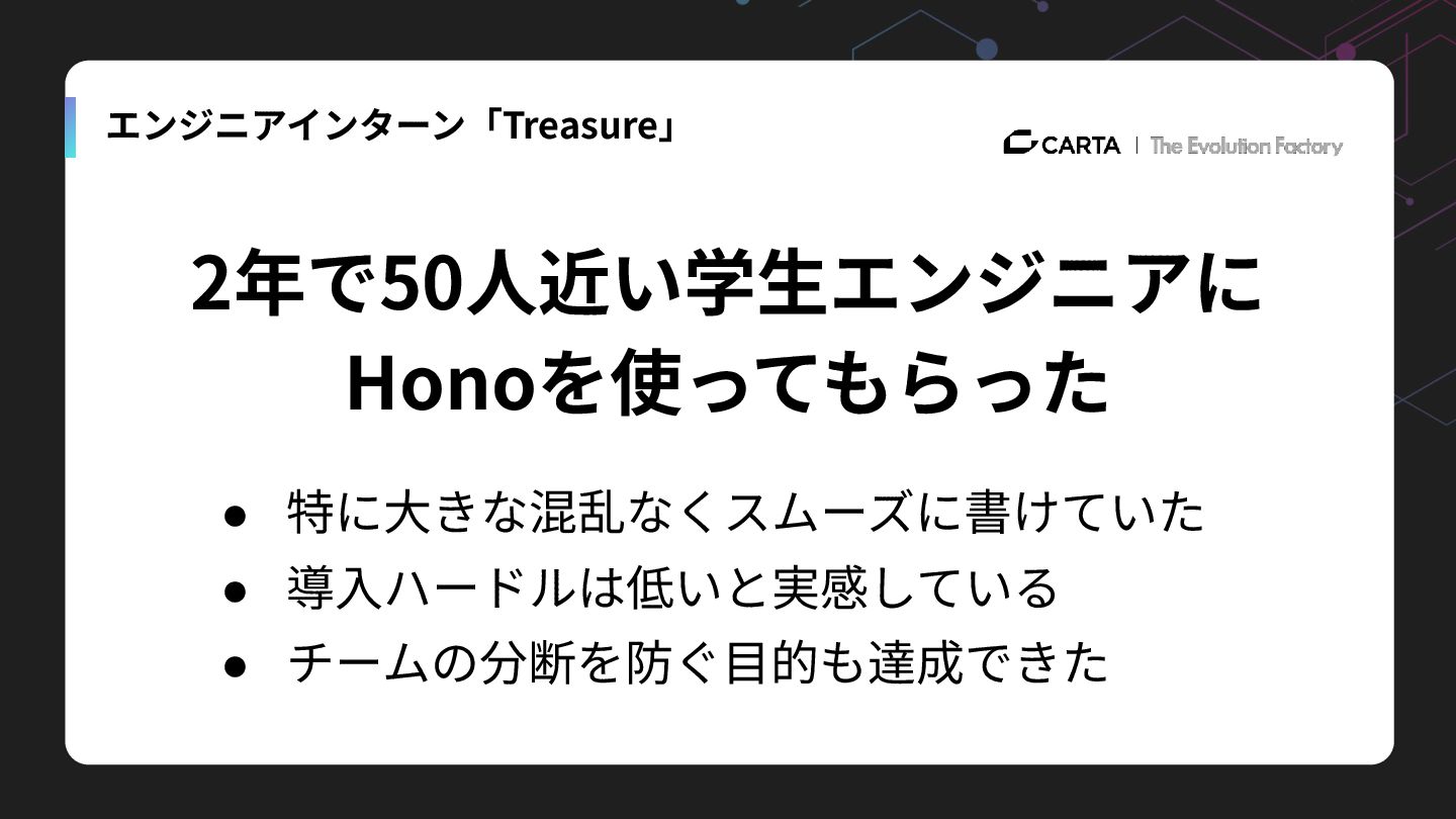 エンジニアインターン「Treasure」とHonoの2年、そして未来へ / Our Journey with Hono Two Years at Treasure and Beyond