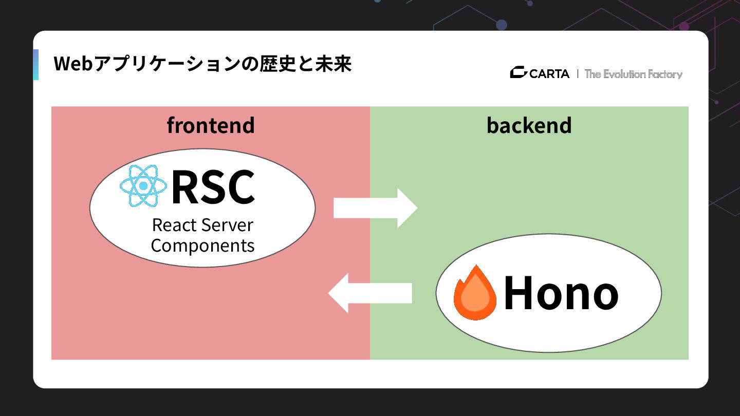 Webアプリケーションの歴史と未来 frontend backend Hono RSC React Server Components