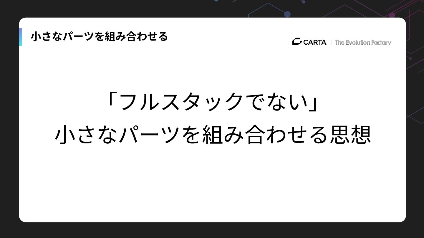 ⼩さなパーツを組み合わせる 「フルスタックでない」 ⼩さなパーツを組み合わせる思想