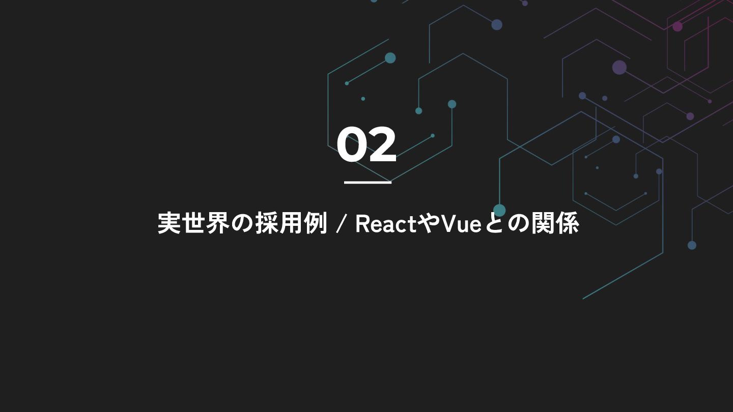 02 実世界の採用例 / ReactやVueとの関係