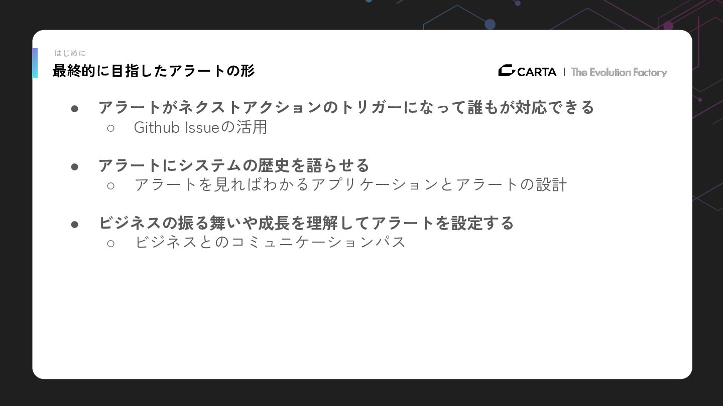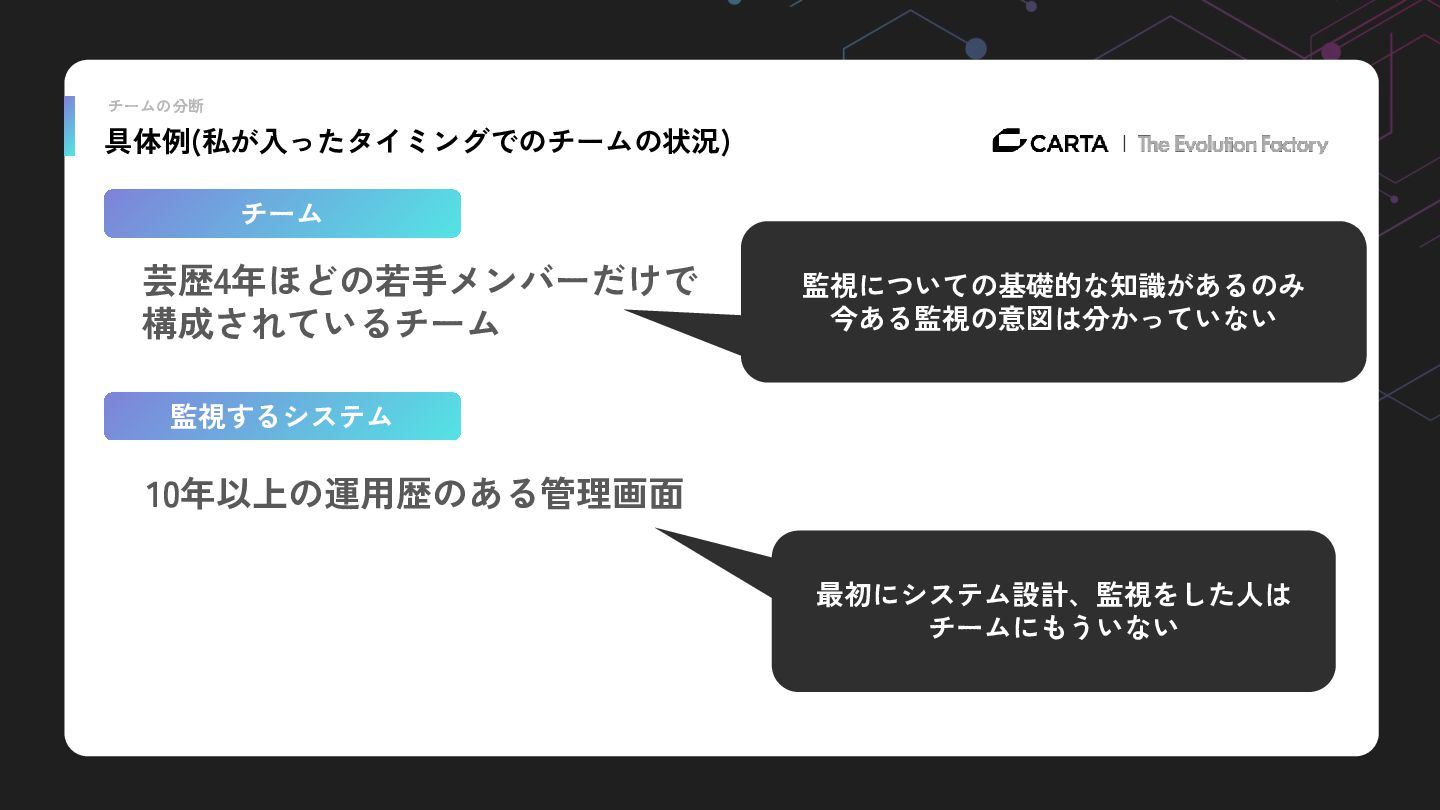 本人資料から転載: https://speakerdeck.com/konchanss/team-based-monitoring-improvement-from-alert