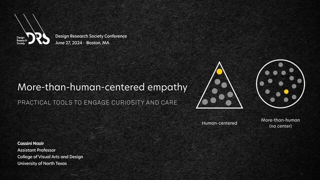 PRACTICAL TOOLS TO ENGAGE CURIOSITY AND CARE More-than-human-centered empathy Human-centered More-than-human (no center) Cassini Nazir Assistant Professor College of Visual Arts and Design University of North Texas Design Research Society Conference June 27, 2024 · Boston, MA Design Research Society Design Research Society