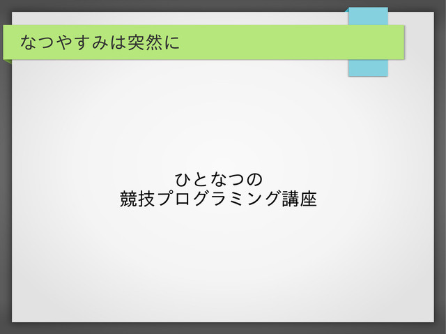 なつやすみは突然に ひとなつの 競技プログラミング講座