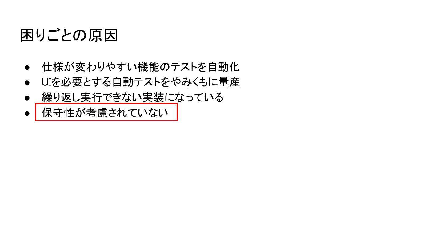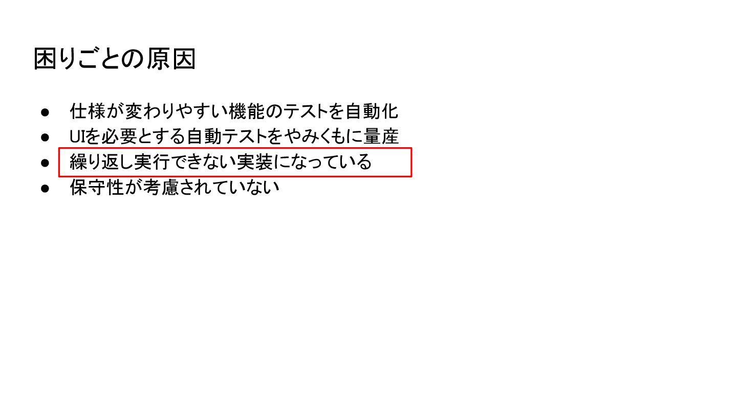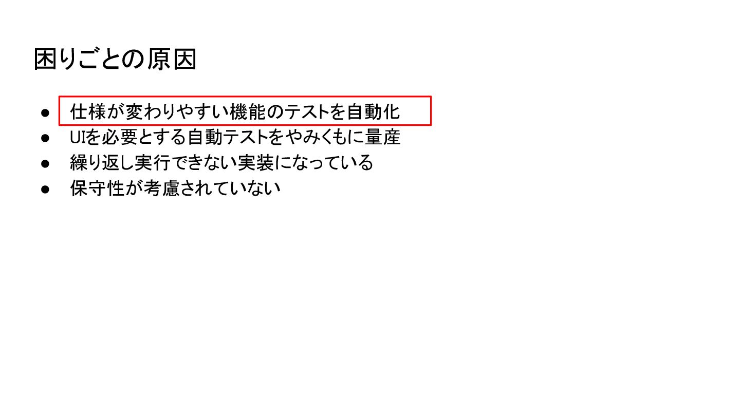 起こるかもしれないこと • 自動化したかったテストが自動化できない