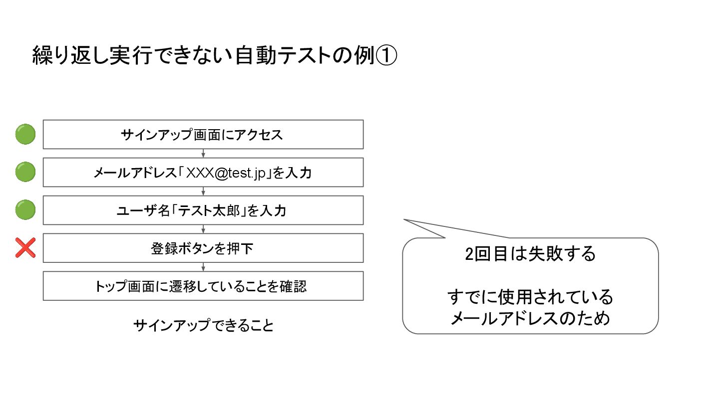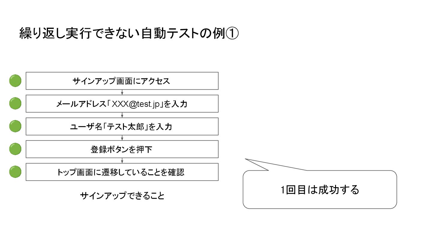 🟢 🟢 繰り返し実行できない自動テストの例①