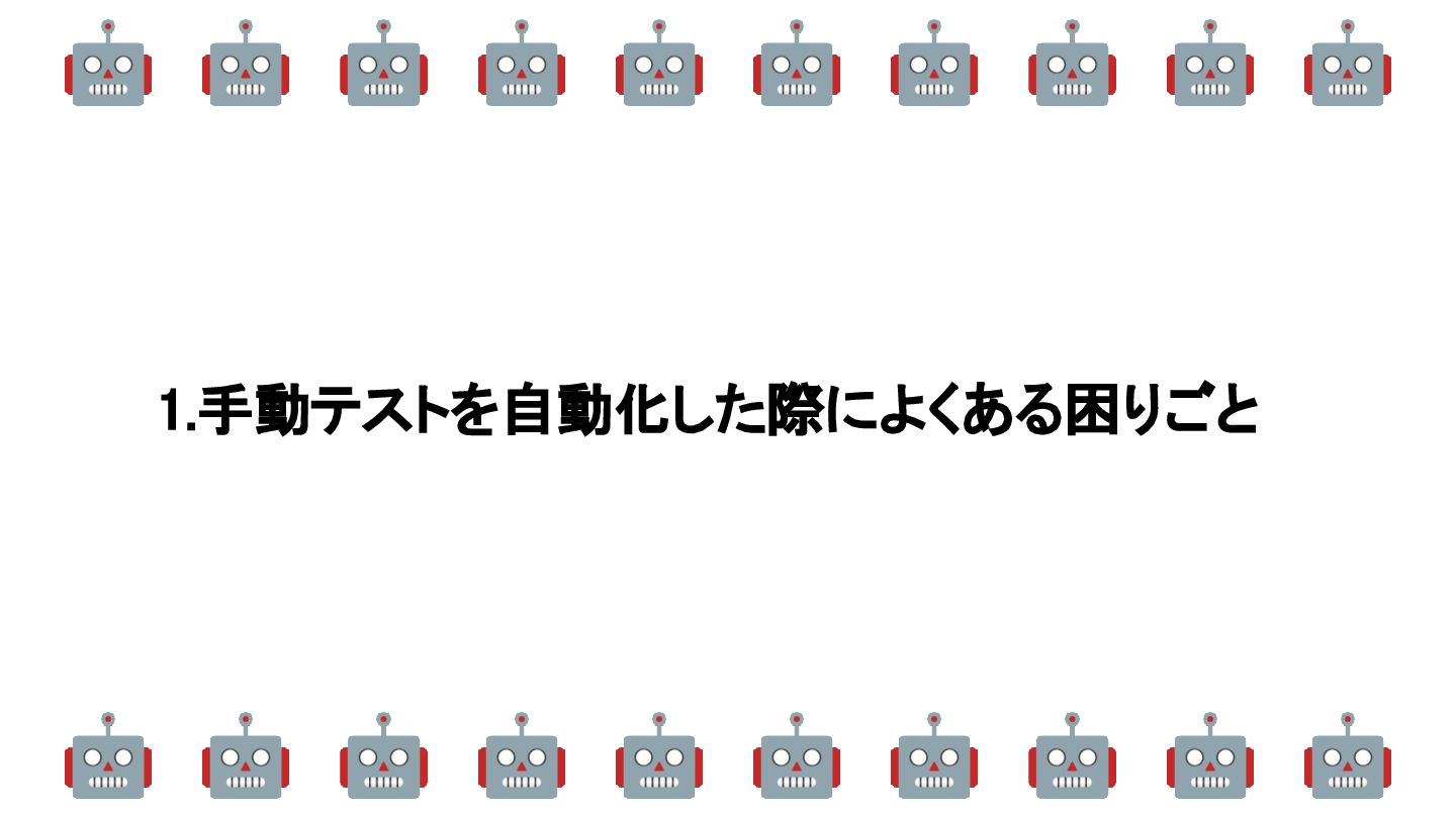 1.手動テストを自動化した際によくある困りごと 🤖 🤖 🤖 🤖 🤖 🤖 🤖 🤖