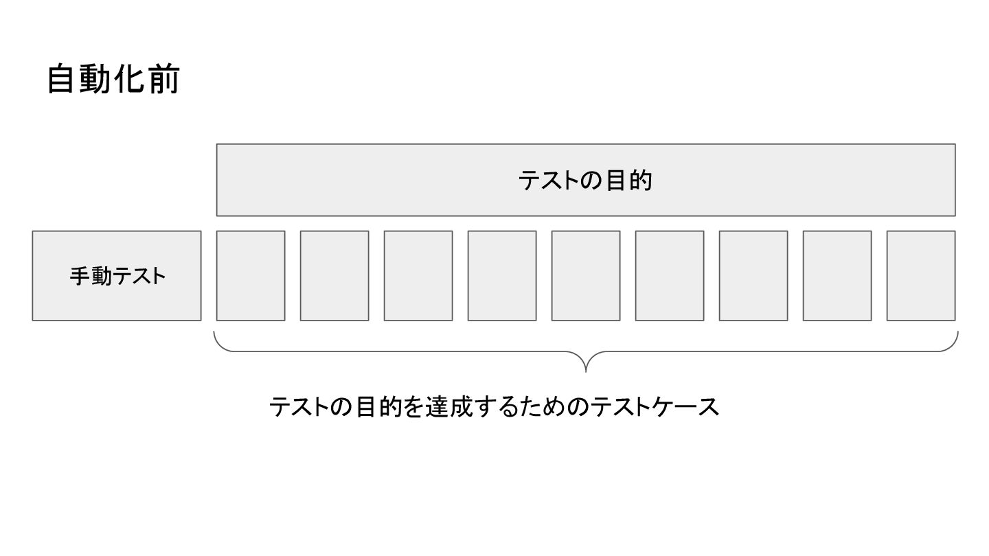 テストの目的 手動テスト テストの目的を達成するためのテストケース 自動化前