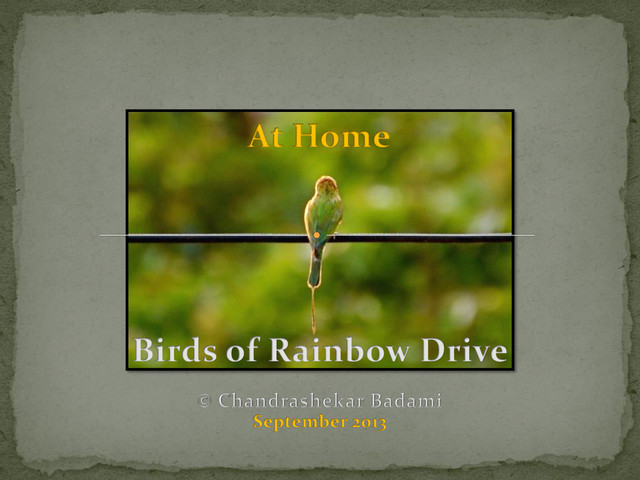 - and I don’t mean just the people! We are indeed fortunate that we have so many feathered friends sharing our space, even if it is in passing. It was my pleasure to share some of the vignettes I was able to capture as part of my thoroughly enjoyable “project” to catalogue the birds of RBD. In a relatively short span of time, I was able to catalogue over 35 different varieties of birds, and it is an ongoing endeavor as you will notice. I hope you enjoyed this presentation and that it will help you recognize the birds, and awaken the urge to make them welcome in our homes. Chandrashekar Badami [email protected] Photographing birds is not easy – for one, they are never still, and for another the foliage often gets in the way. I have had my share of frustrations and luck in equal parts - but like I said before, I thoroughly enjoy the experience.