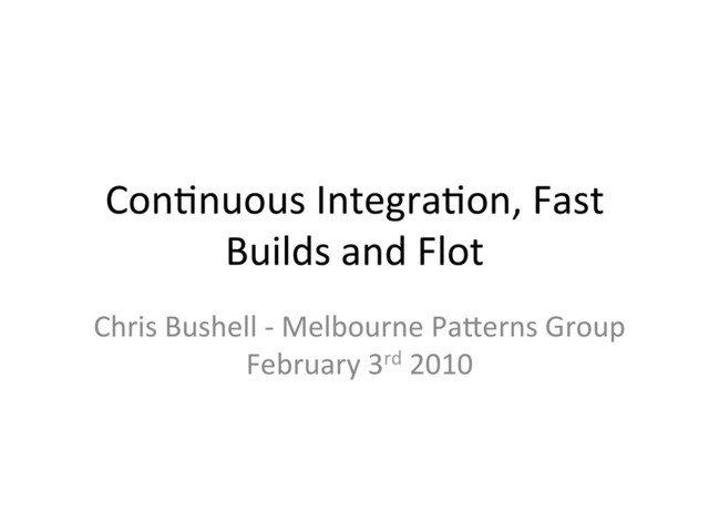 Con$nuous Integra$on, Fast Builds and Flot Chris Bushell