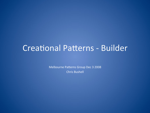 Crea%onal Pa+erns -‐ Builder Melbourne Pa+erns Group Dec 3