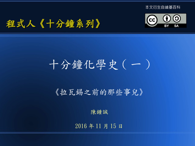 還是讓我們把焦點拉回 •化學史上面好了 ...