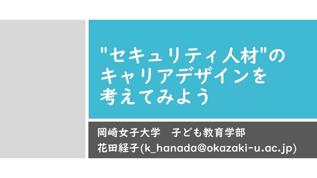 "セキュリティ人材"の キャリアデザインを 考えてみよう 岡崎女子大学 子ども教育学部 花田経子(