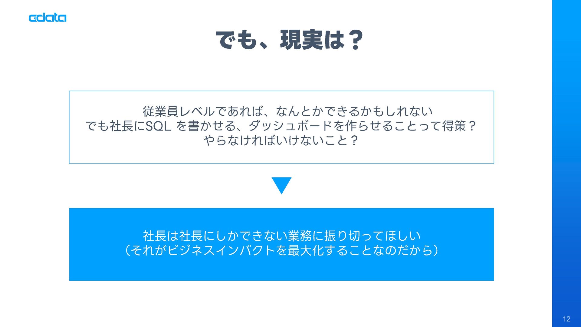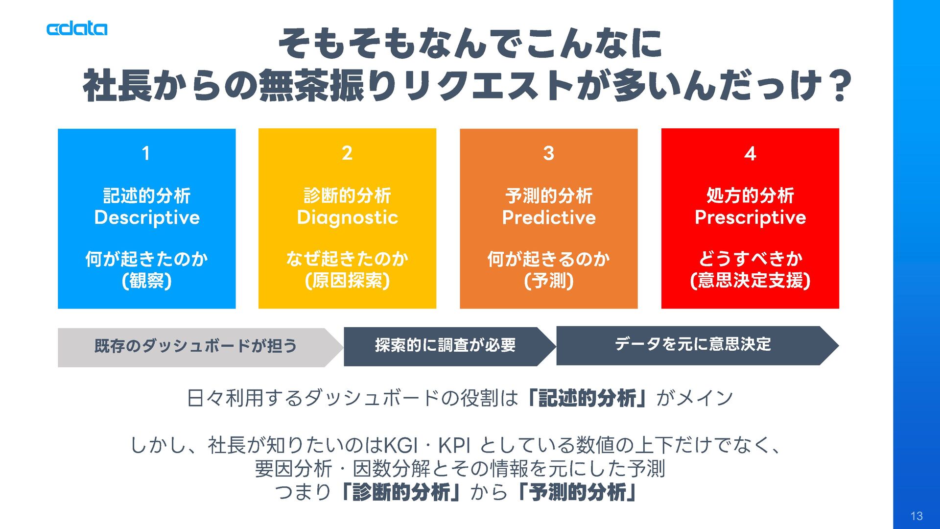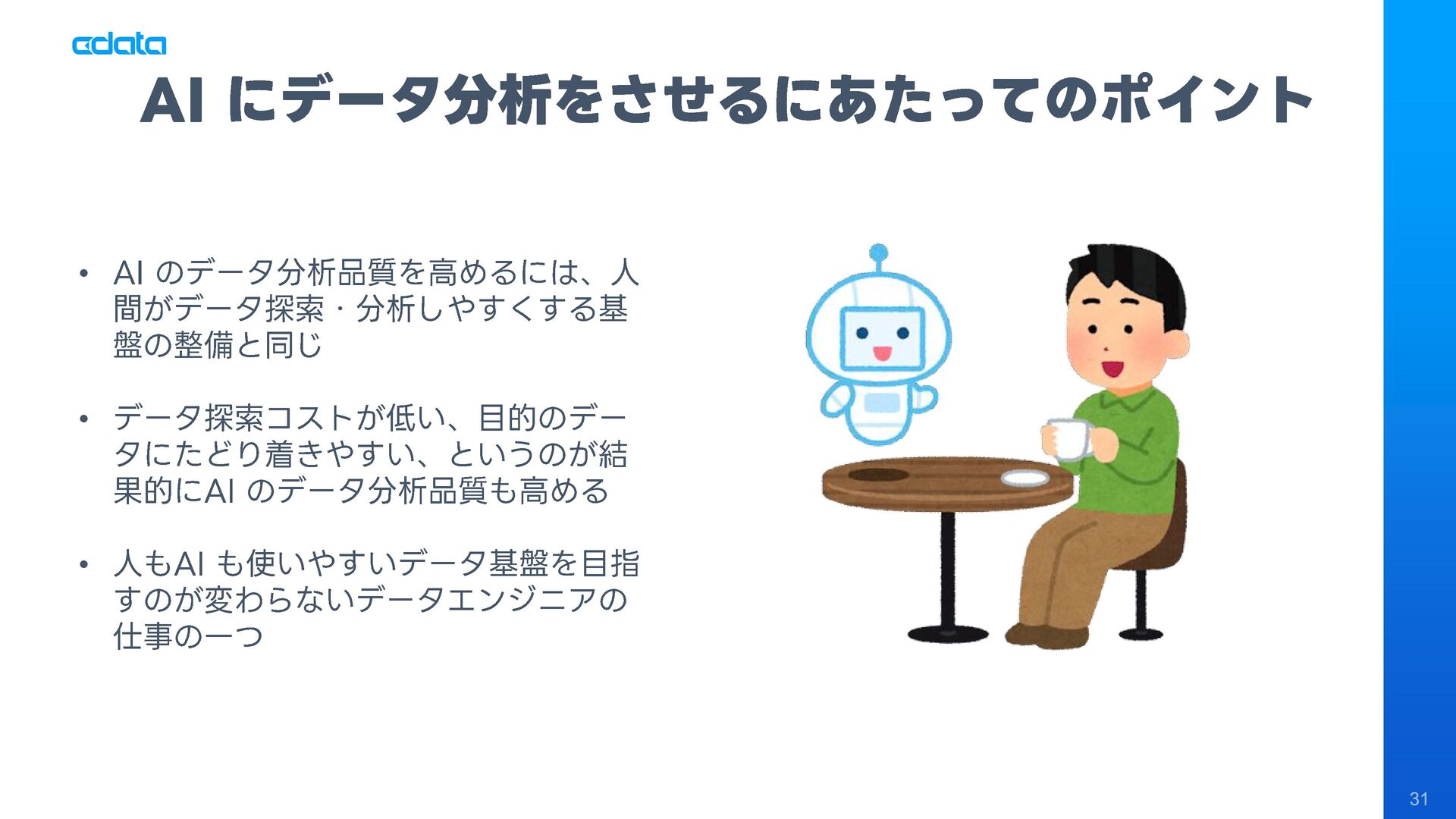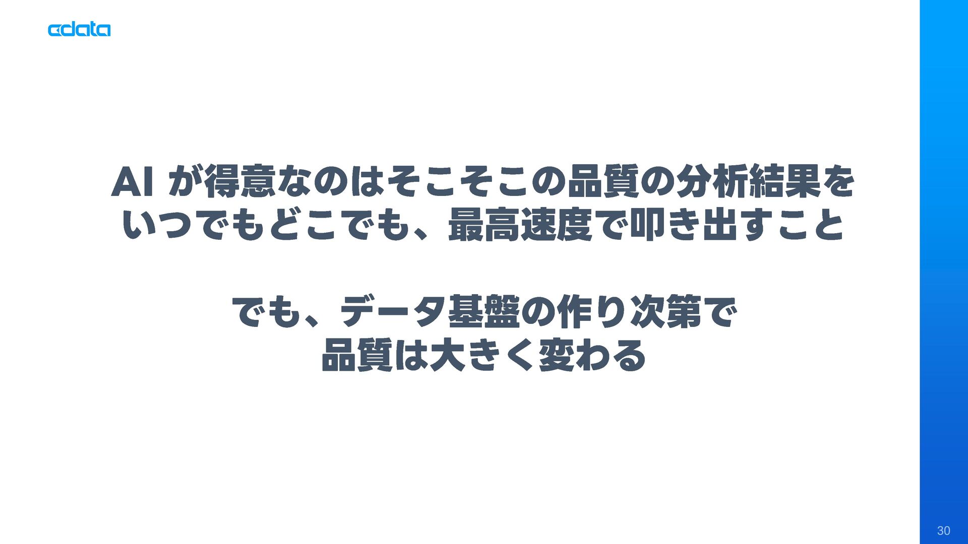 AI エージェントと外部サービスの連携をサポートする「MCP」というテクノロジーが注目を集めています。この「MCP」を利用することで、Claude やAmazon Bedrock などのAI にAmazon RedShift との連携機能をサポートさせ、自社のデータに基づきながらダッシュボード作りやデータのインサイトの発見を支援させる「AI エージェント型BI ツール」のように利用することも可能です。 このセッションでは「MCP」の仕組みの解説と共に、AI エージェントとAmazon RedShift を組み合わせることで、データ分析でどのようなことが可能になるのかデモを交えながら紹介します。