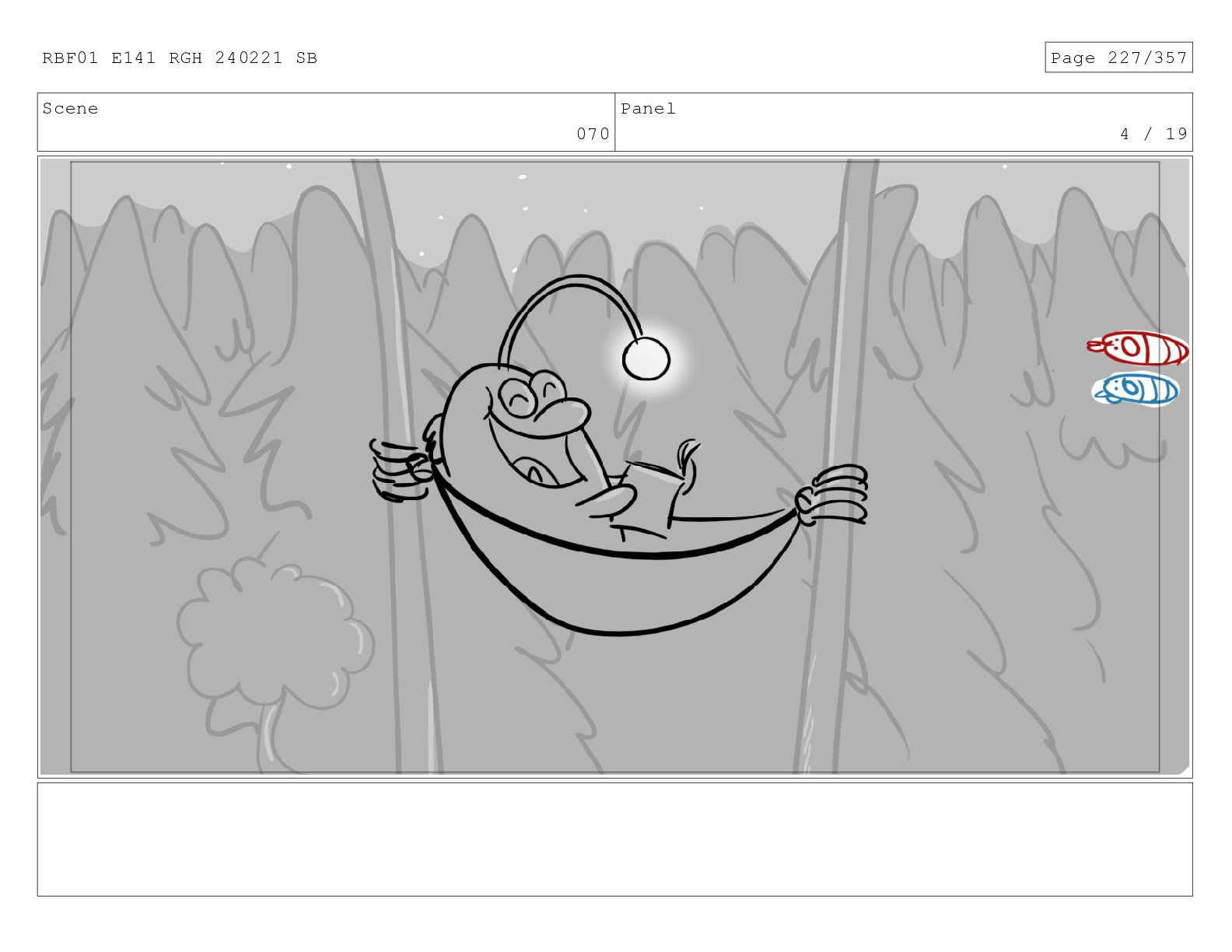Scene 080 Panel 17 / 37 Dialog RED FISH <SNORING>