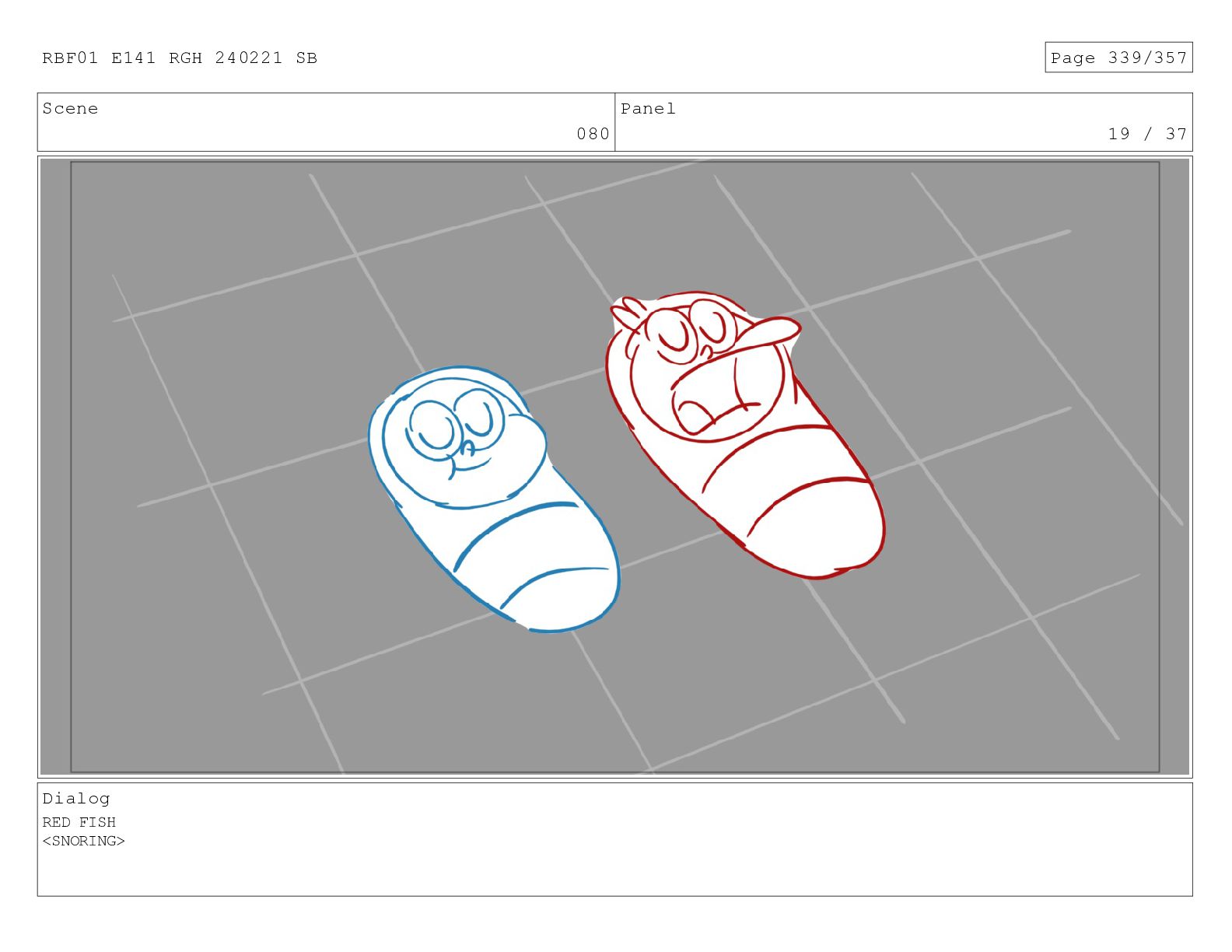 Scene 080 Panel 20 / 37 Dialog RED FISH <SNORING>
