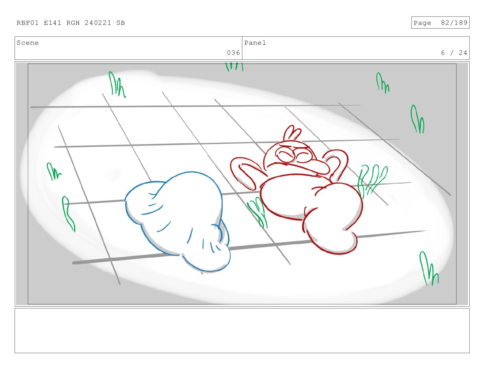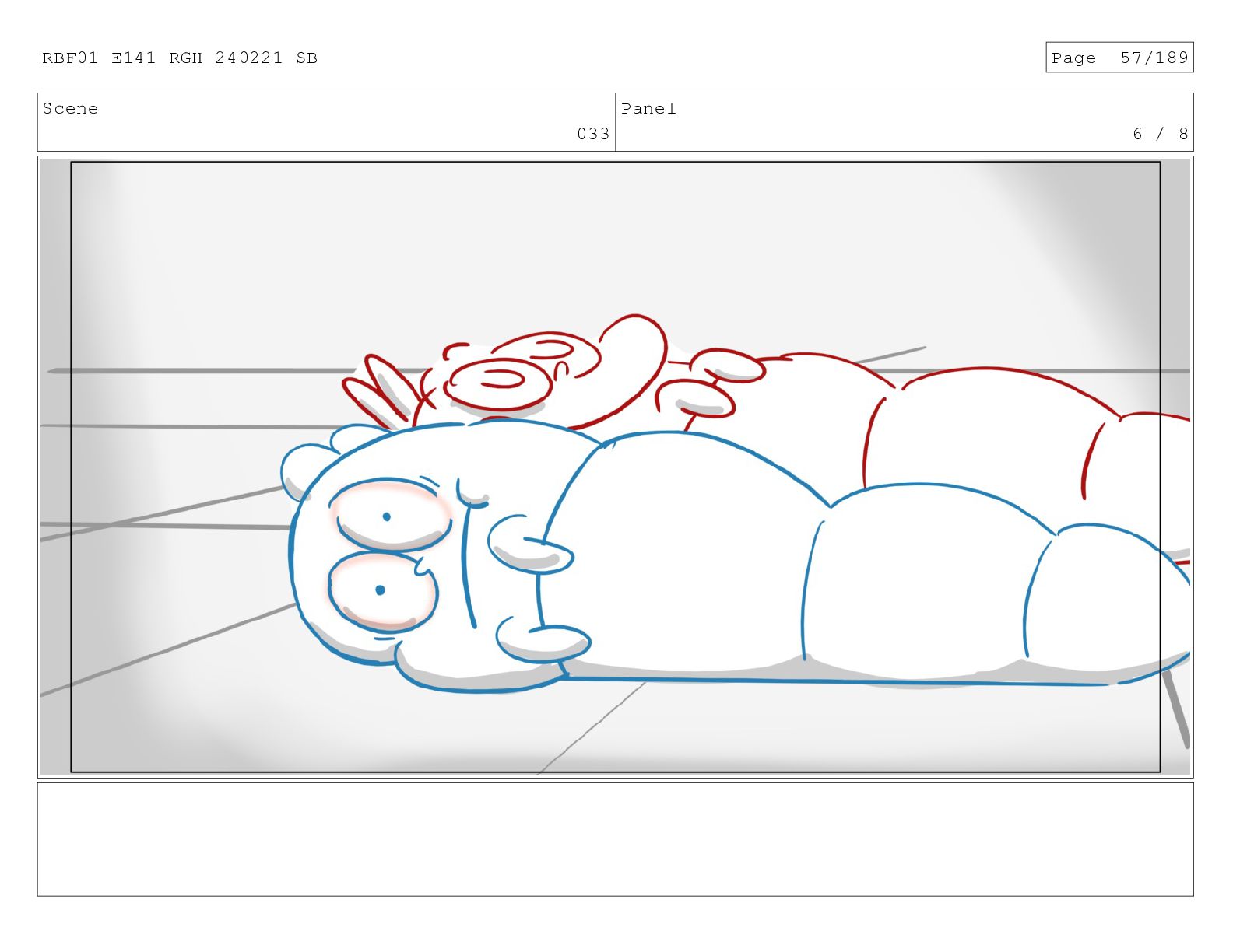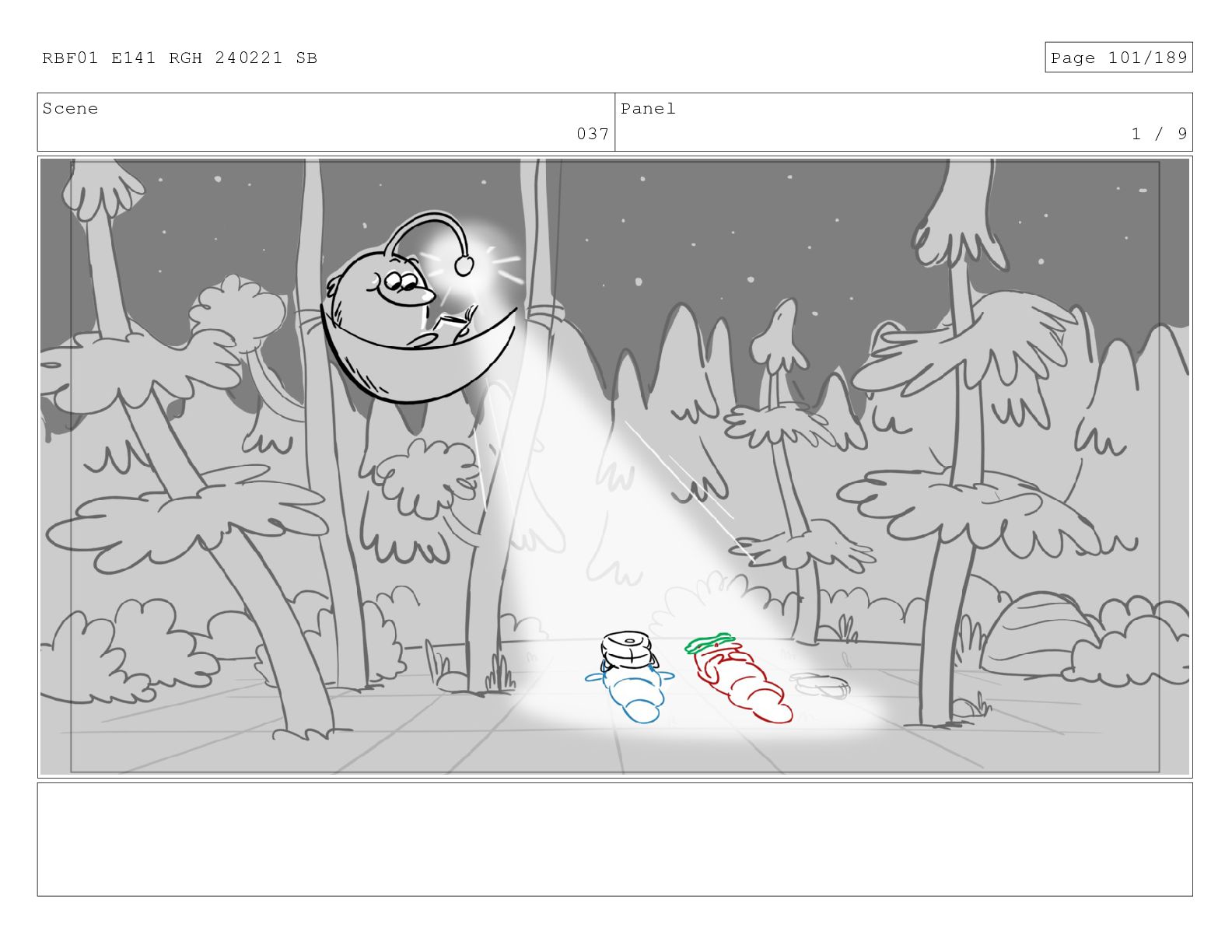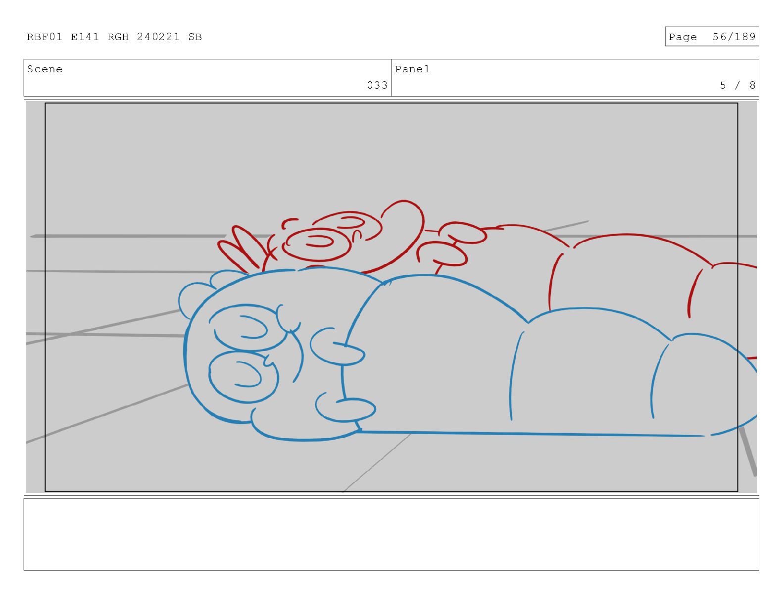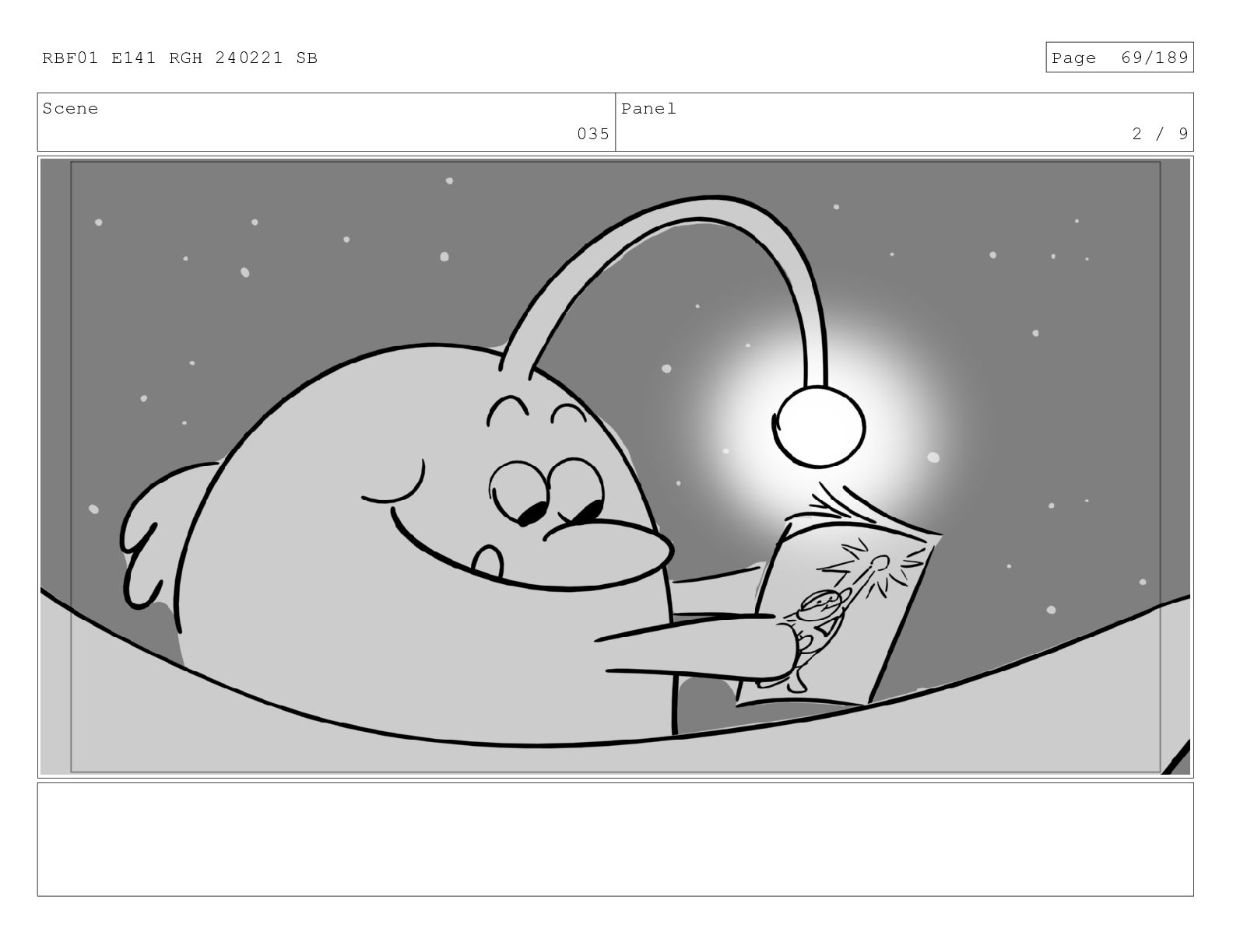 A section I boarded from the Netflix show Red Fish Blue Fish wherein Red and Blue look for a comfortable place to sleep. Director Katya Bowser plussed up some drawings.