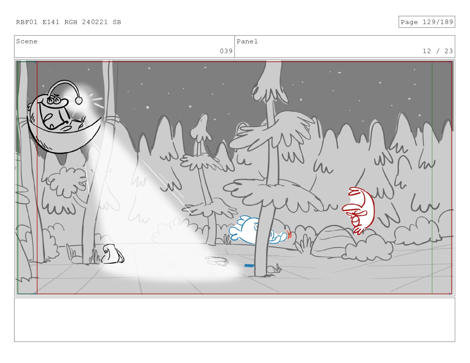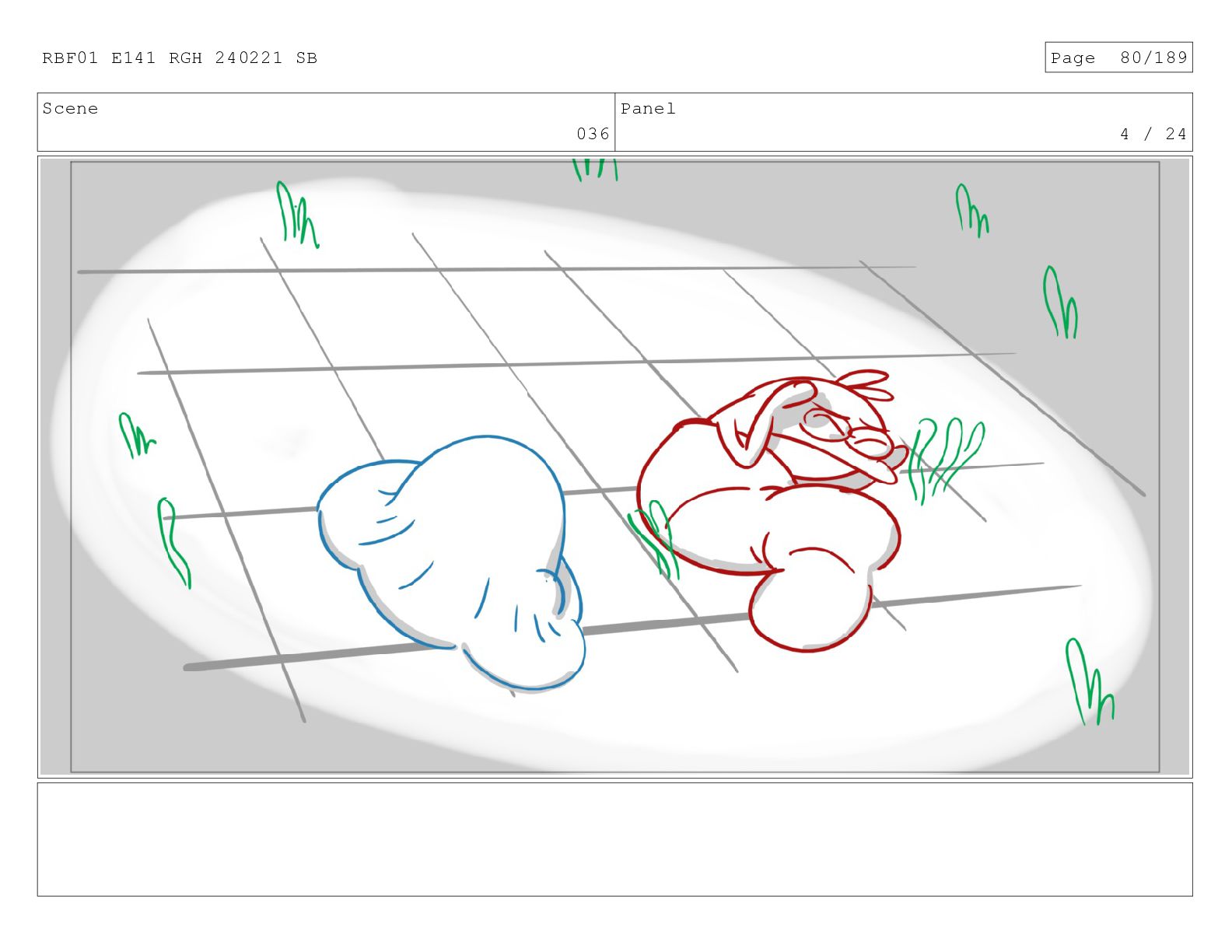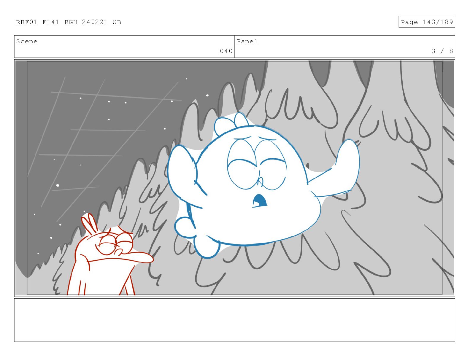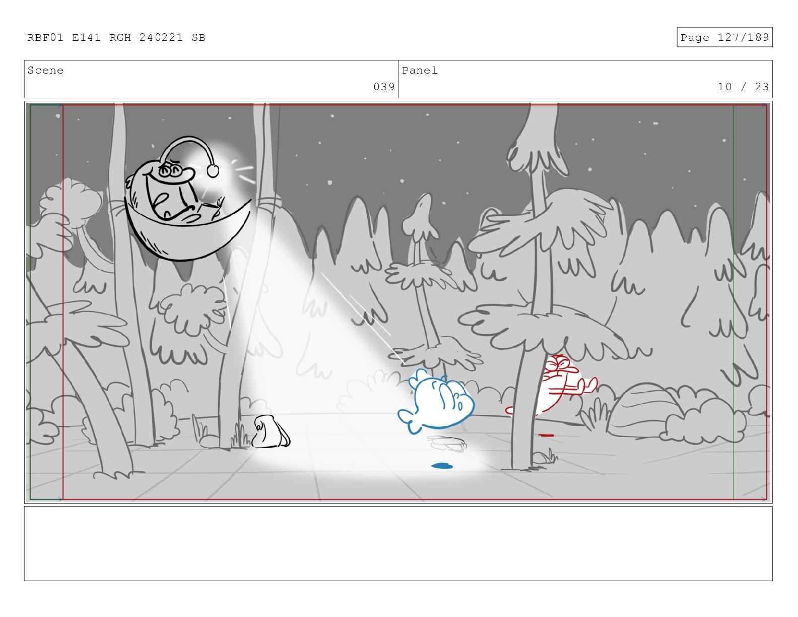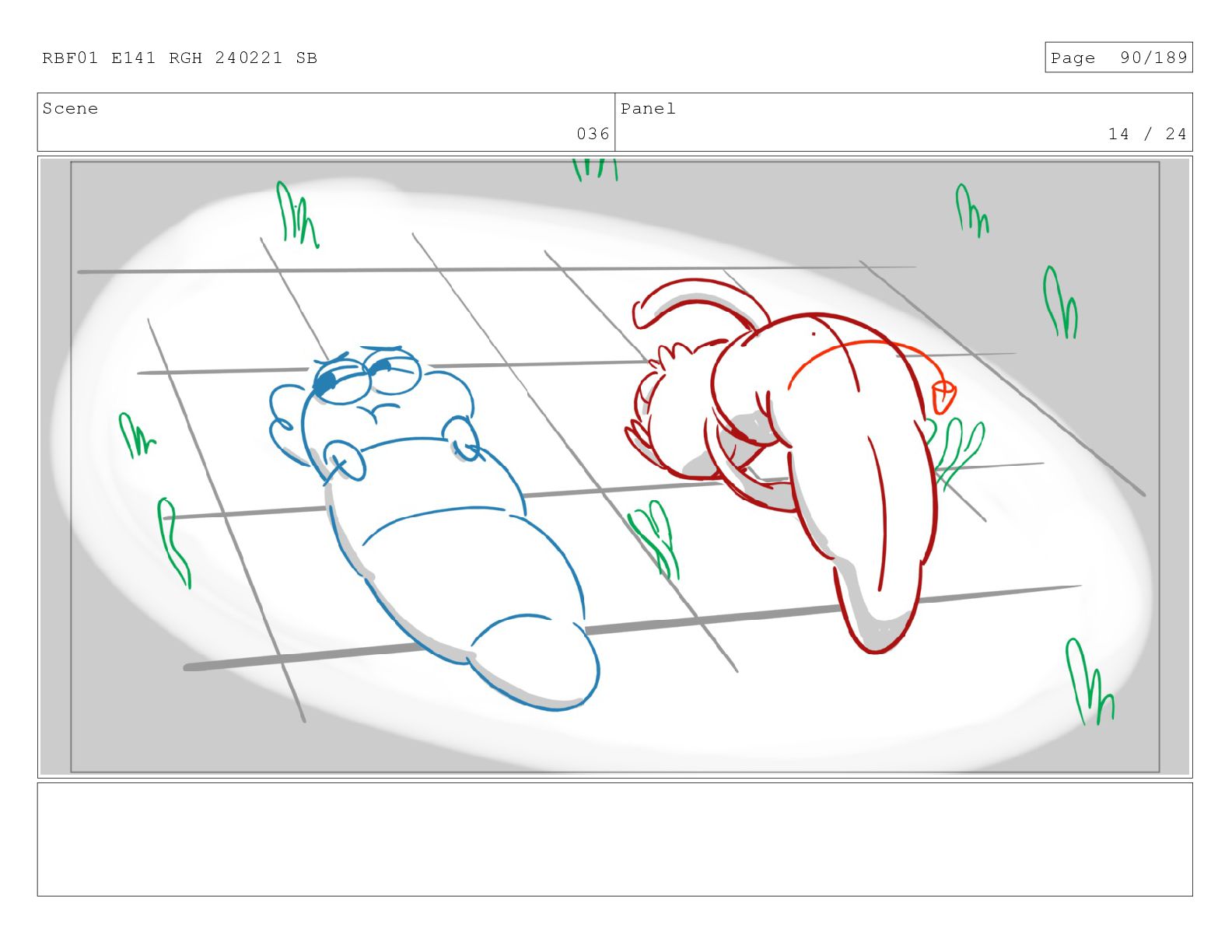 A section I boarded from the Netflix show Red Fish Blue Fish wherein Red and Blue look for a comfortable place to sleep. Director Katya Bowser plussed up some drawings.