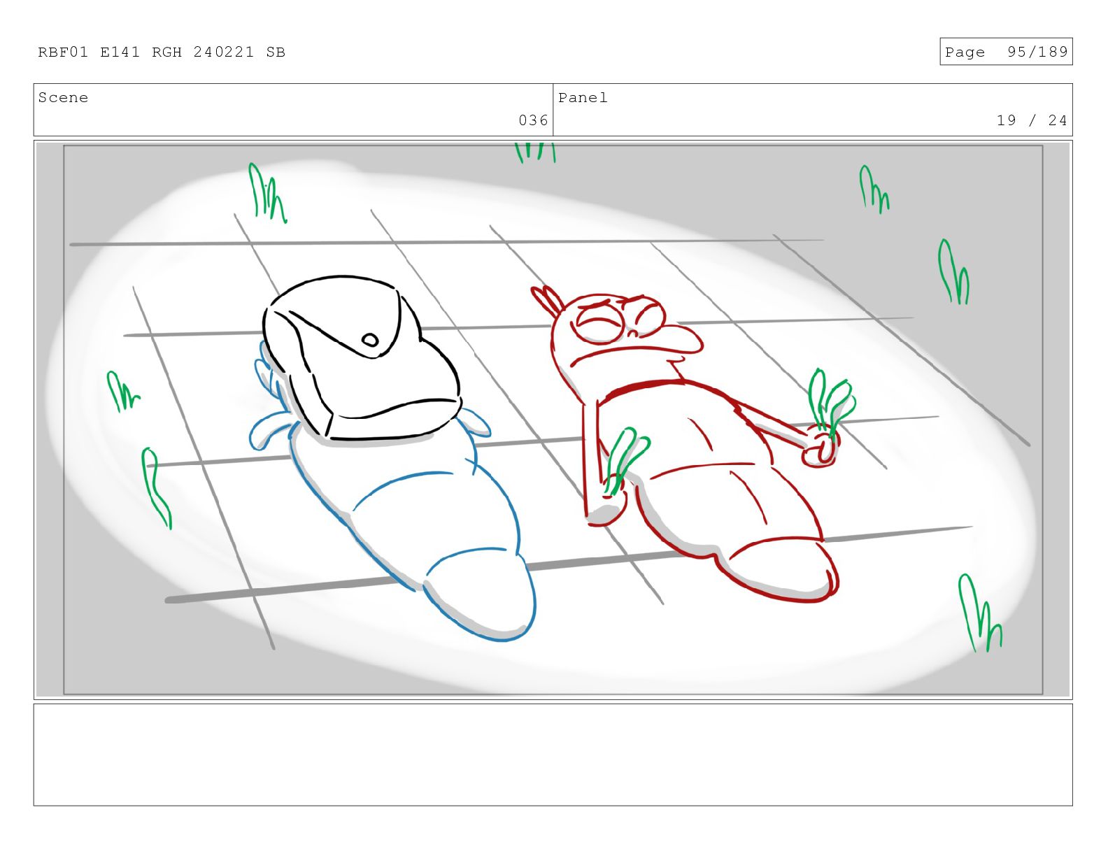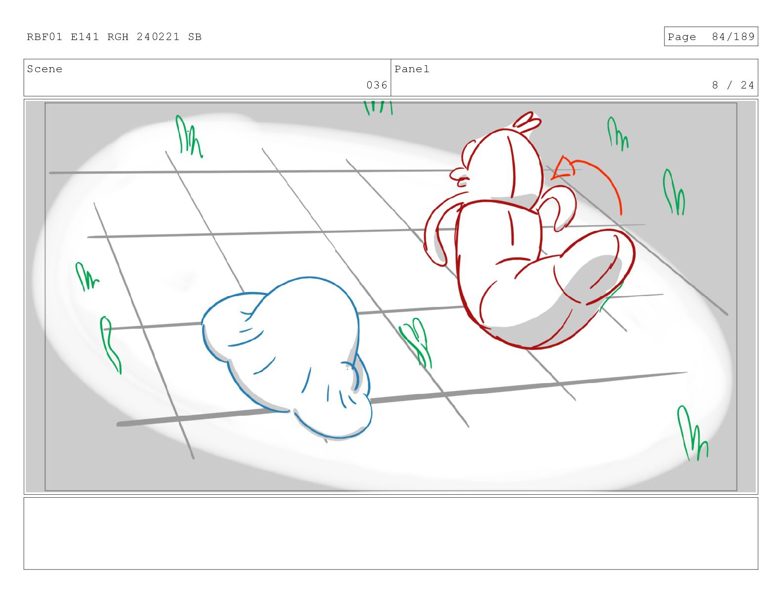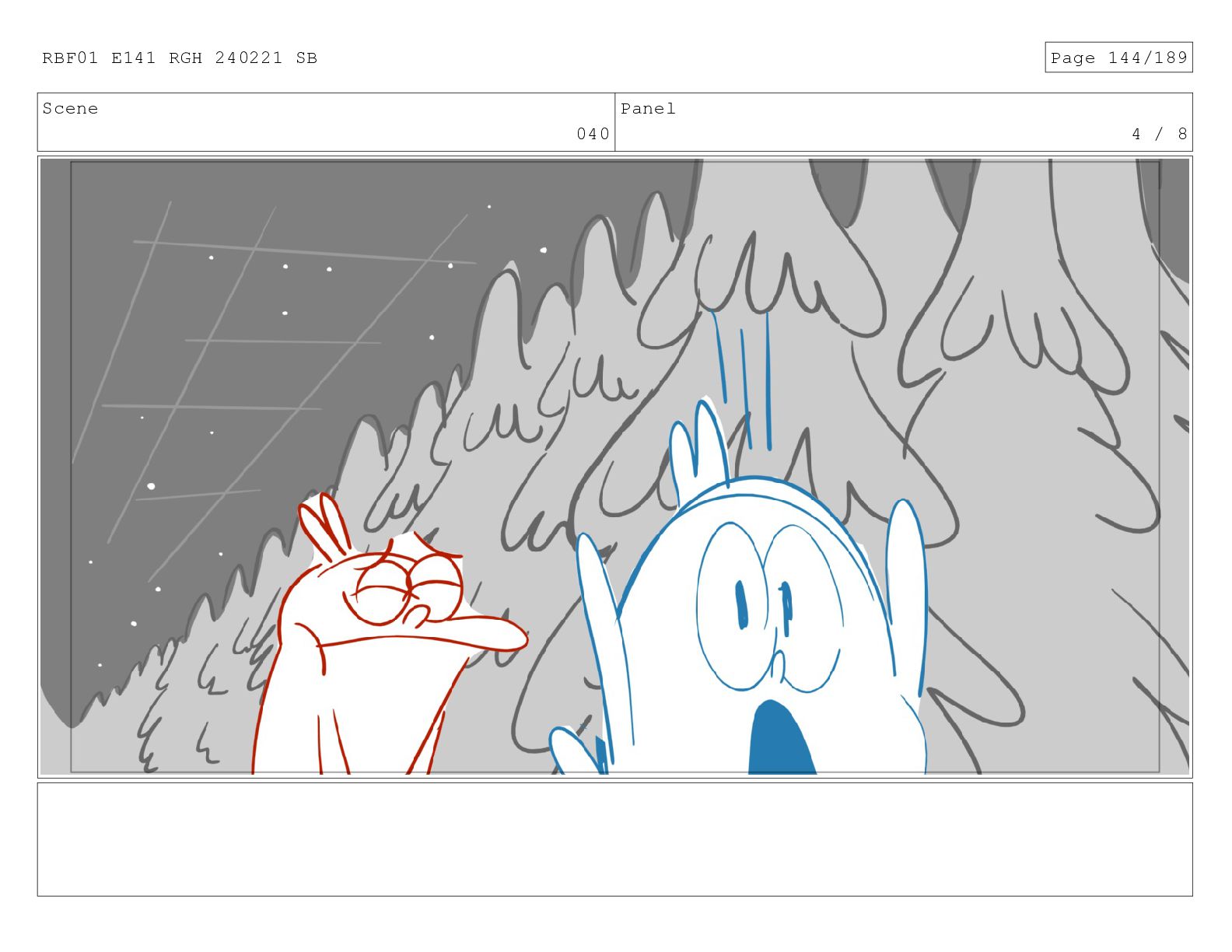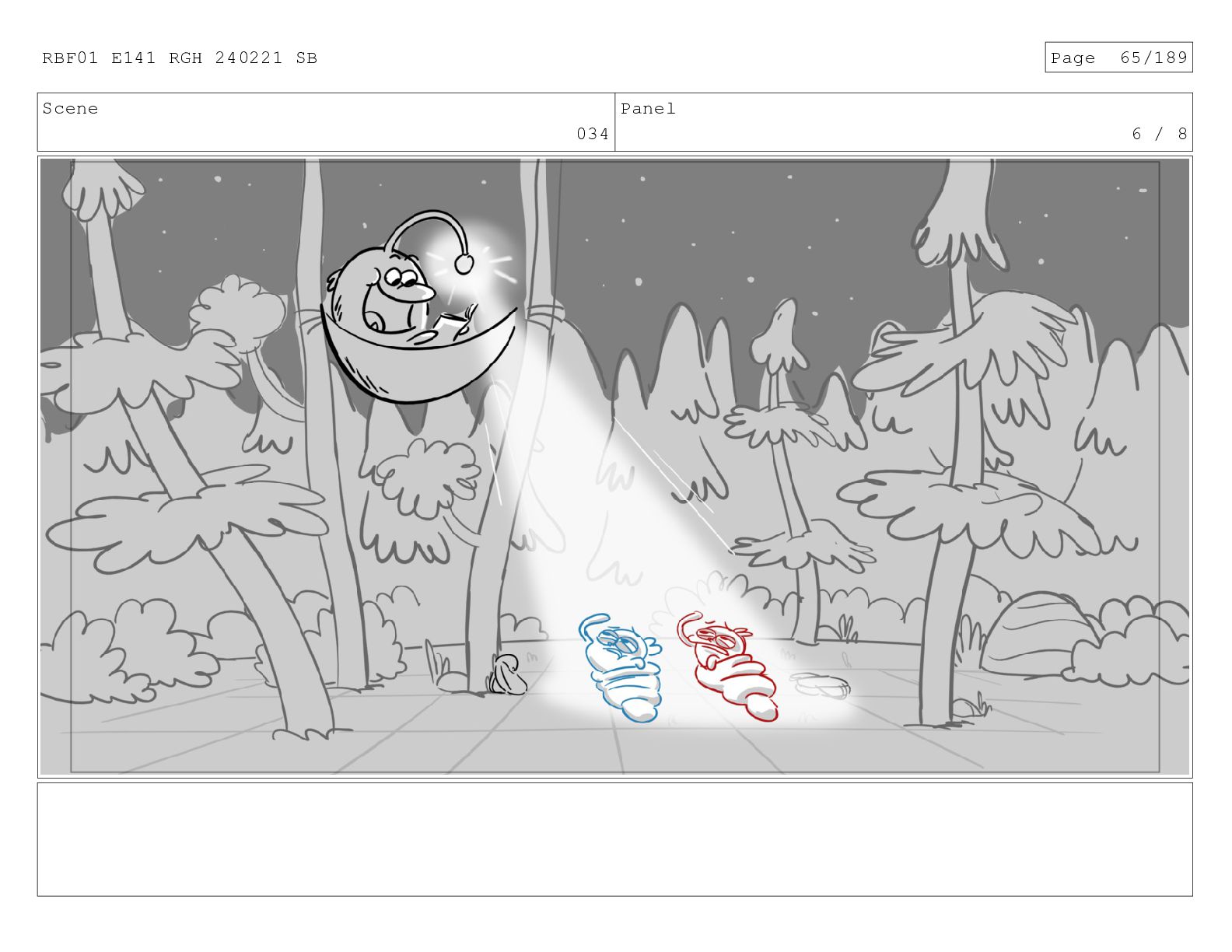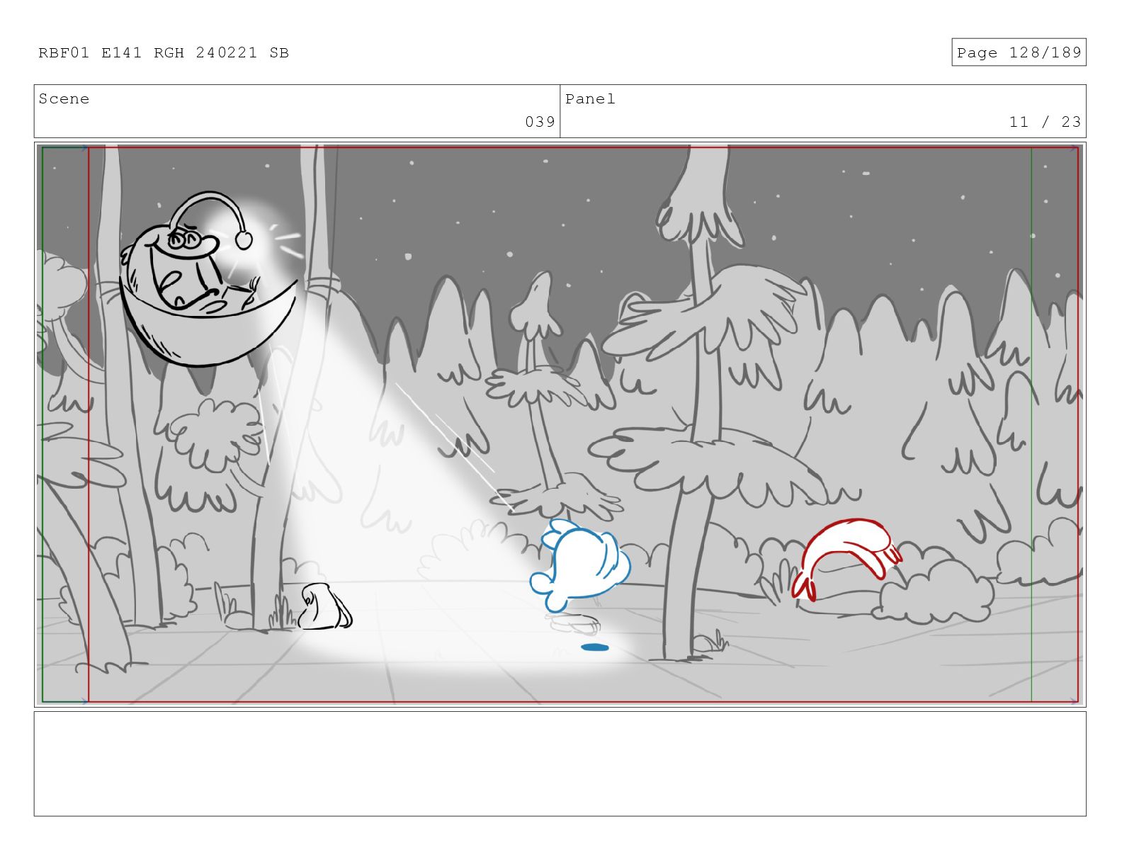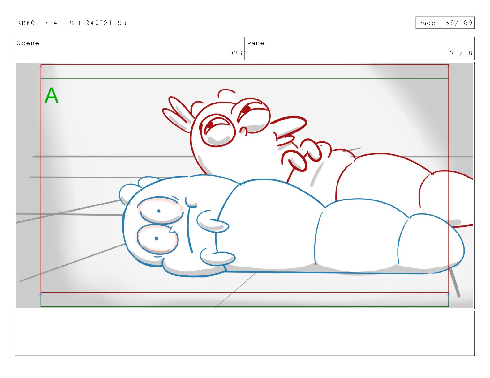 A section I boarded from the Netflix show Red Fish Blue Fish wherein Red and Blue look for a comfortable place to sleep. Director Katya Bowser plussed up some drawings.