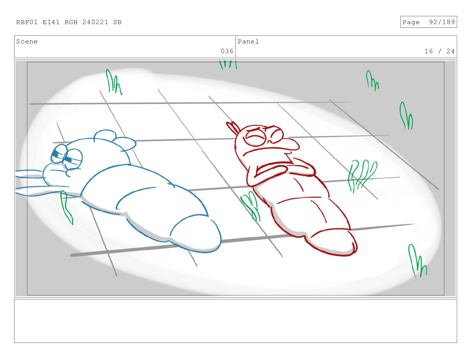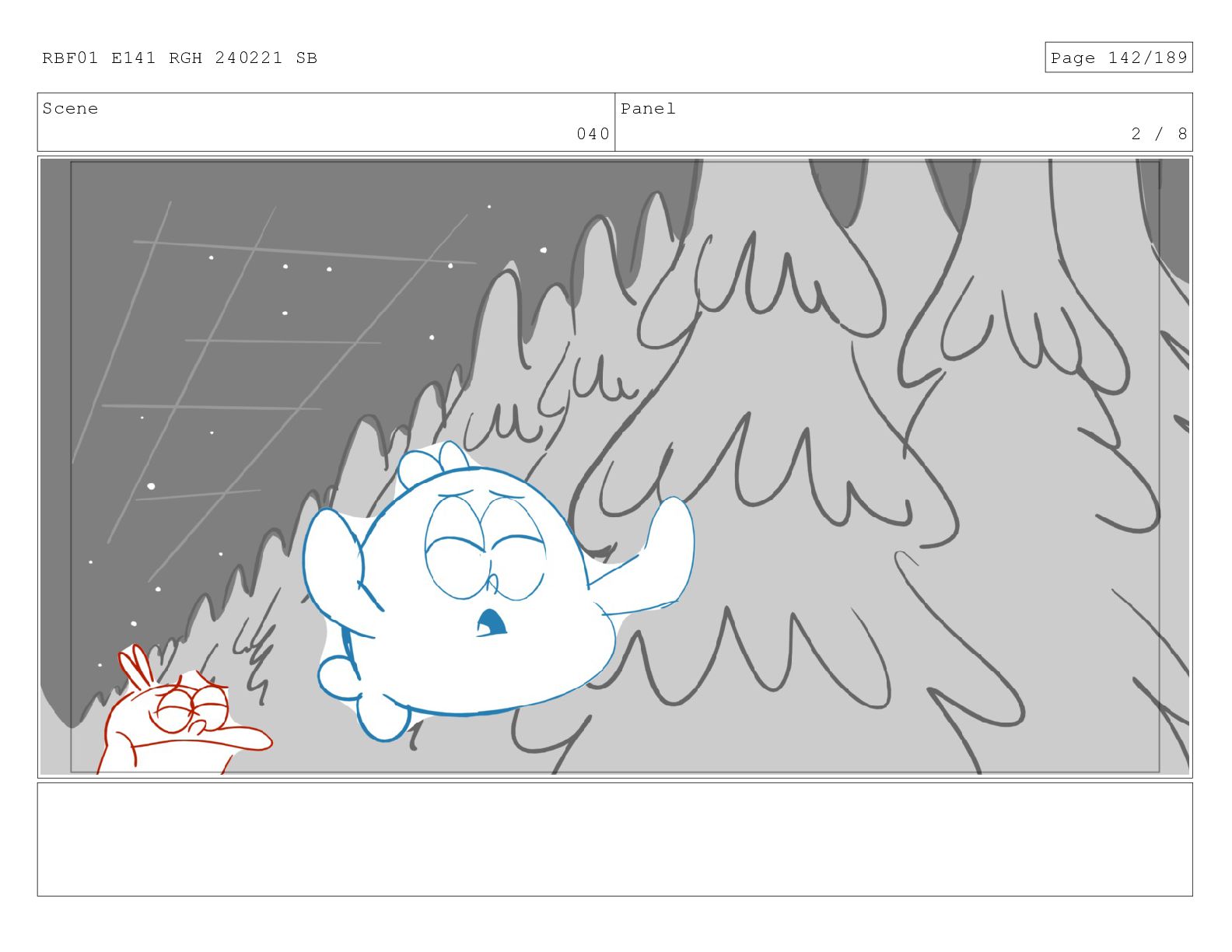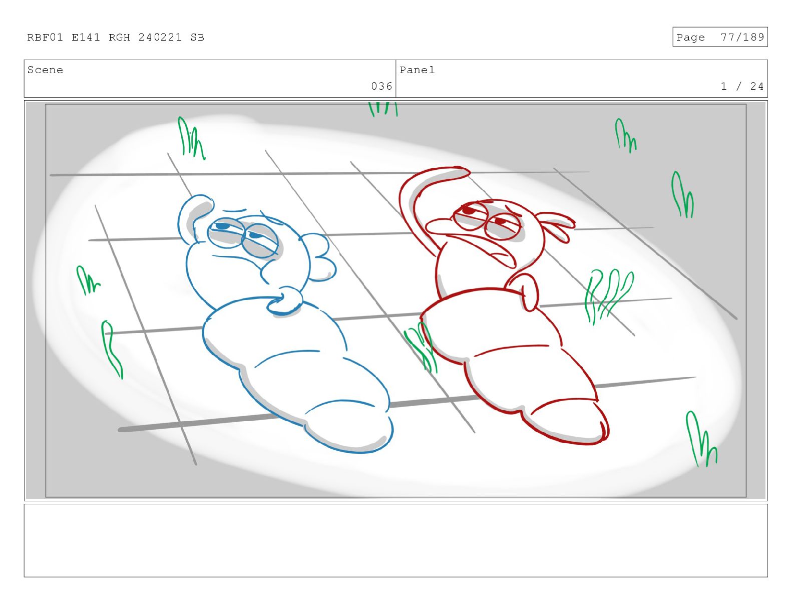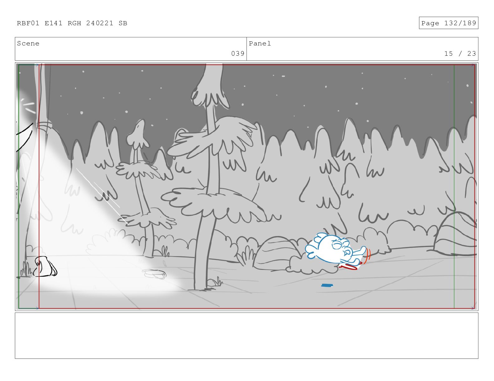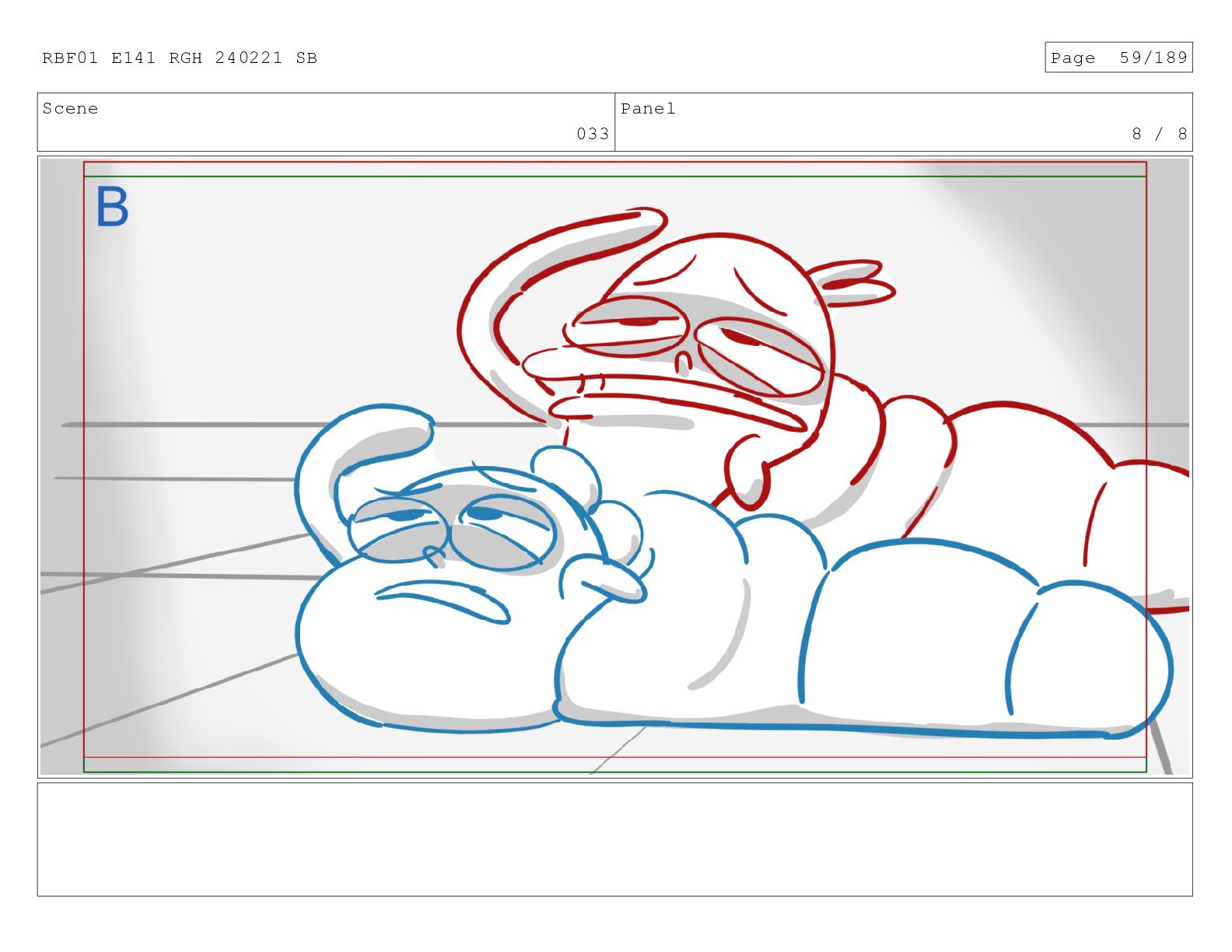 A section I boarded from the Netflix show Red Fish Blue Fish wherein Red and Blue look for a comfortable place to sleep. Director Katya Bowser plussed up some drawings.