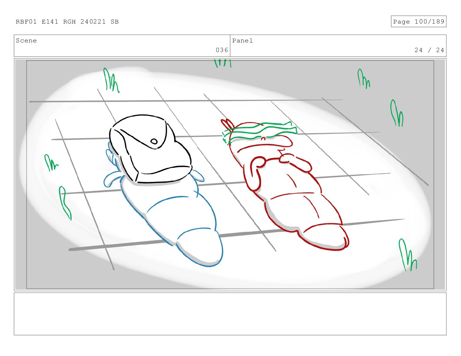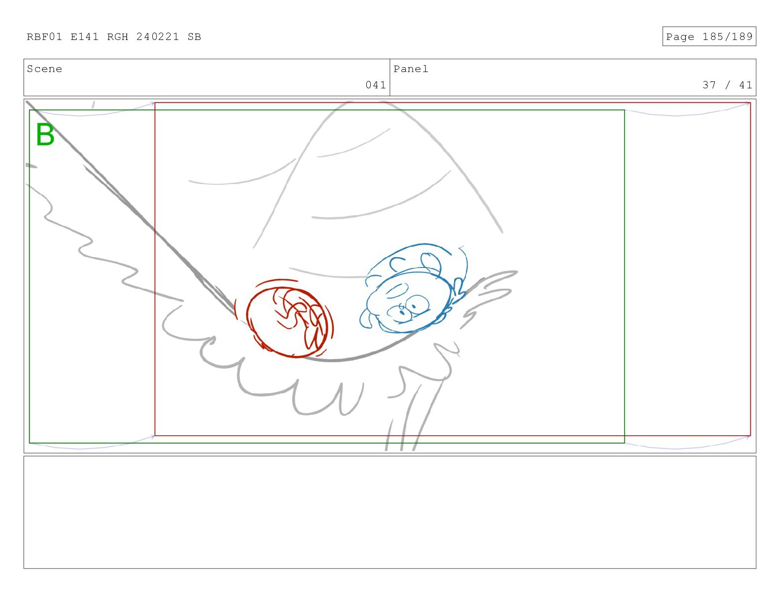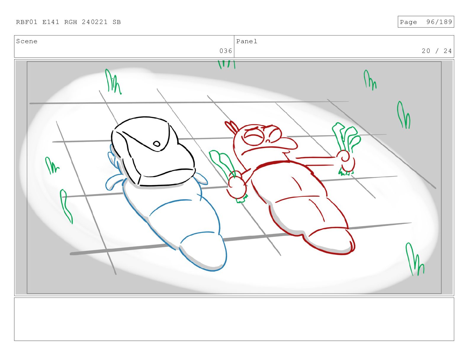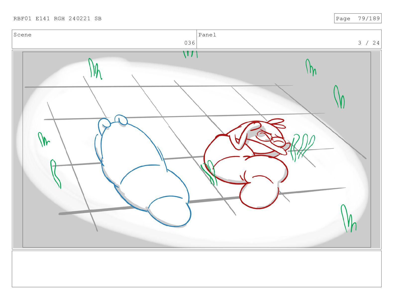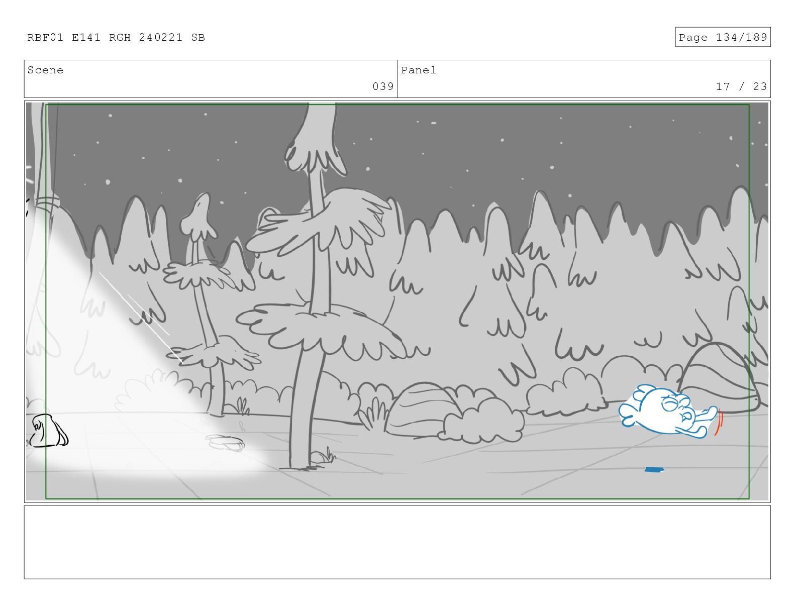 A section I boarded from the Netflix show Red Fish Blue Fish wherein Red and Blue look for a comfortable place to sleep. Director Katya Bowser plussed up some drawings.