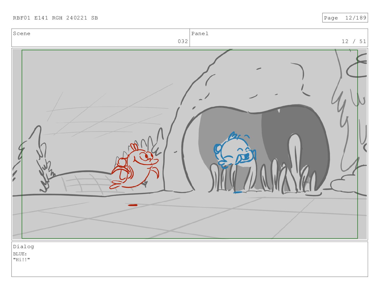 1. Scene 032 Panel 12 / 51 Dialog BLUE: "Hi!!" RBF01