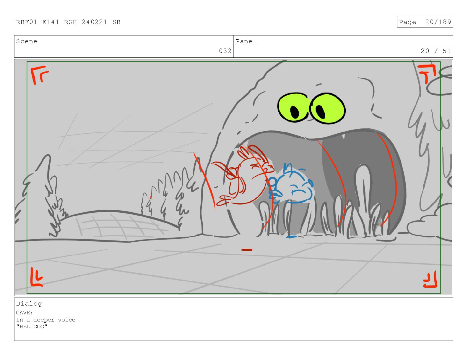2. Scene 032 Panel 19 / 51 Dialog CAVE: In a
