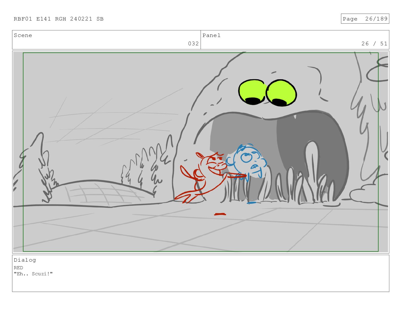 5. Scene 032 Panel 26 / 51 Dialog RED "Eh.. Scuzi!"