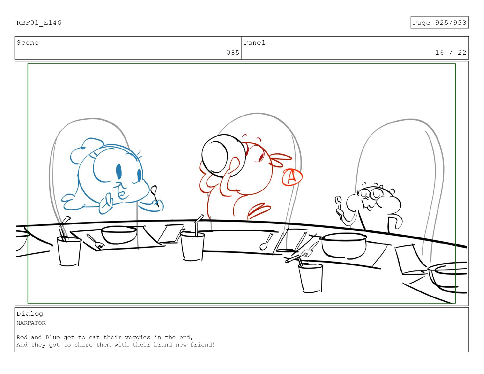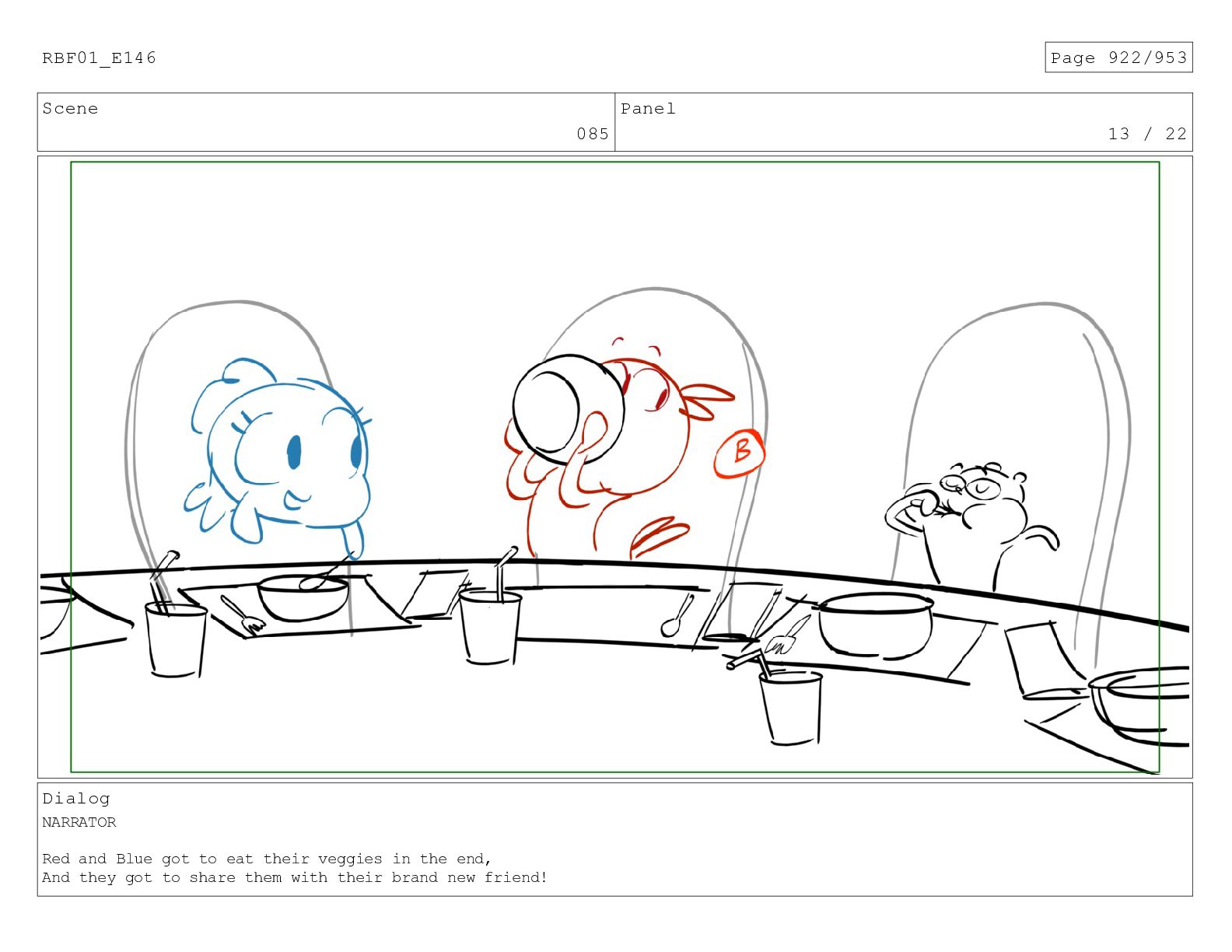 Blue got to eat their veggies in the end, And they got to share them with their brand new friend! RBF01_E146 Page 915/953