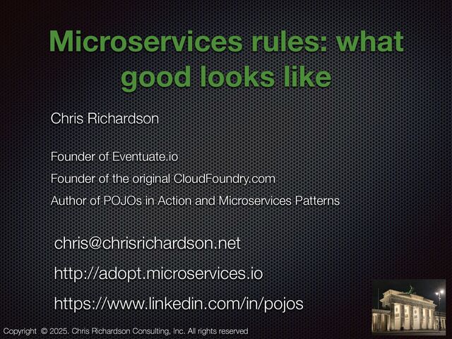 The microservice architecture has become increasingly popular over the past decade. Its key benefits include significantly improving the developer experience and accelerating software delivery. Sadly, however, microservices have often been widely misunderstood and used inappropriately. As a result, many organizations have struggled to benefit from their adoption. I’ve had numerous conversations where developers have complained that their new microservices-based applications are difficult to change. They have very quickly created an unmaintainable legacy application. To prevent this from happening, I’ve defined 11 development and architecture rules (a.k.a. best practices).