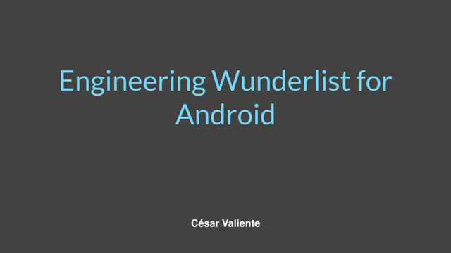 In this talk I want to show you how Wunderlist for Android has been built, having a look to the layers of the app, how our sync algorithm woks and also how we are currently changing the architecture of the app to make it better and even more decoupled.