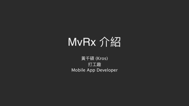 only. By being Kotlin only, we could leverage several powerful language features for a cleaner API. If you are not familiar with Kotlin, in particular, data classes, and receiver types, please run through Kotlin Koans or other Kotlin tutorials before continuing with MvRx. • 運⽤用的 Kotlin 語⾔言的特性,設計出更更精簡的 API,讓 MvRx 更更好⽤用 • Data classes • Receiver types