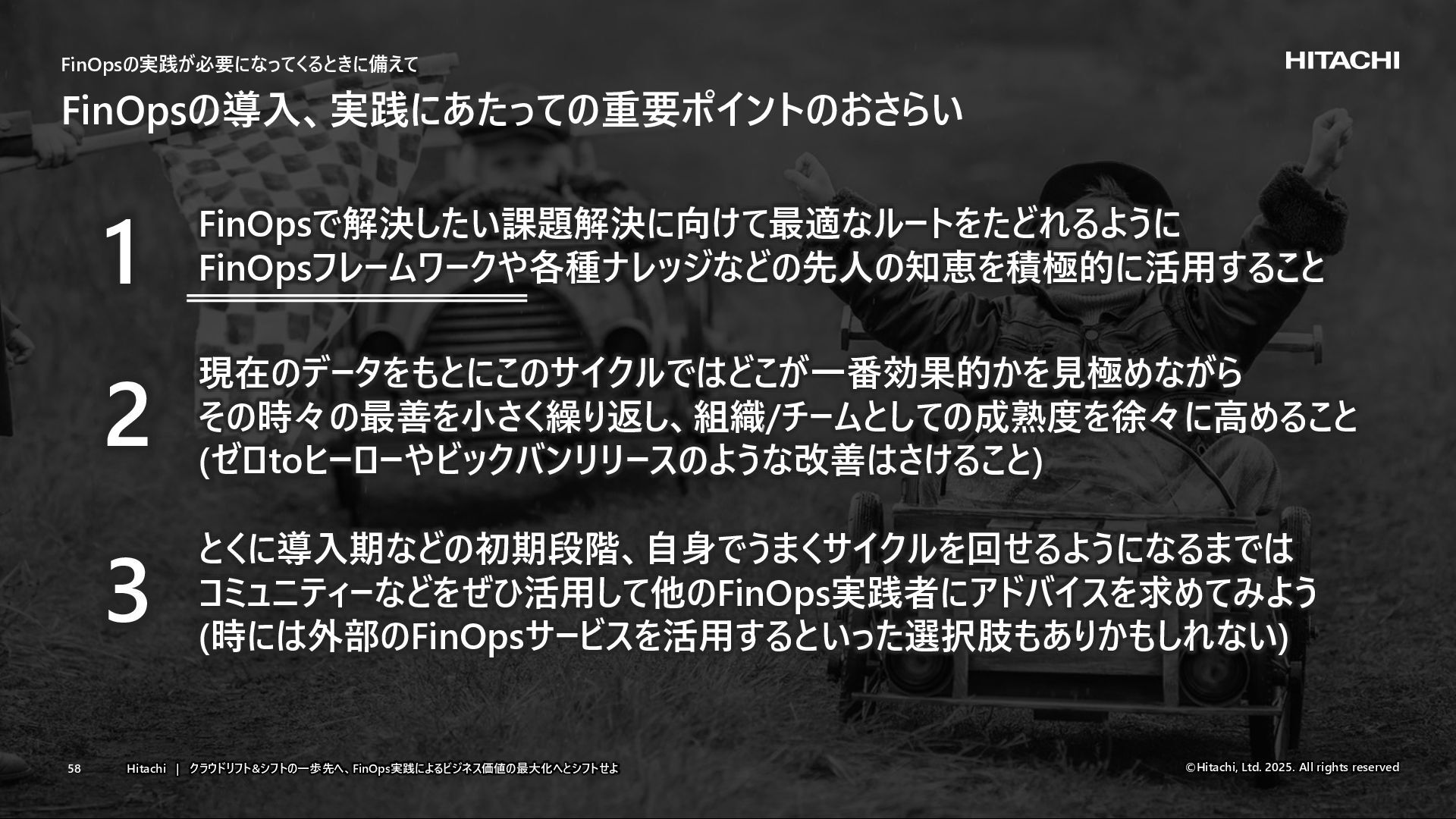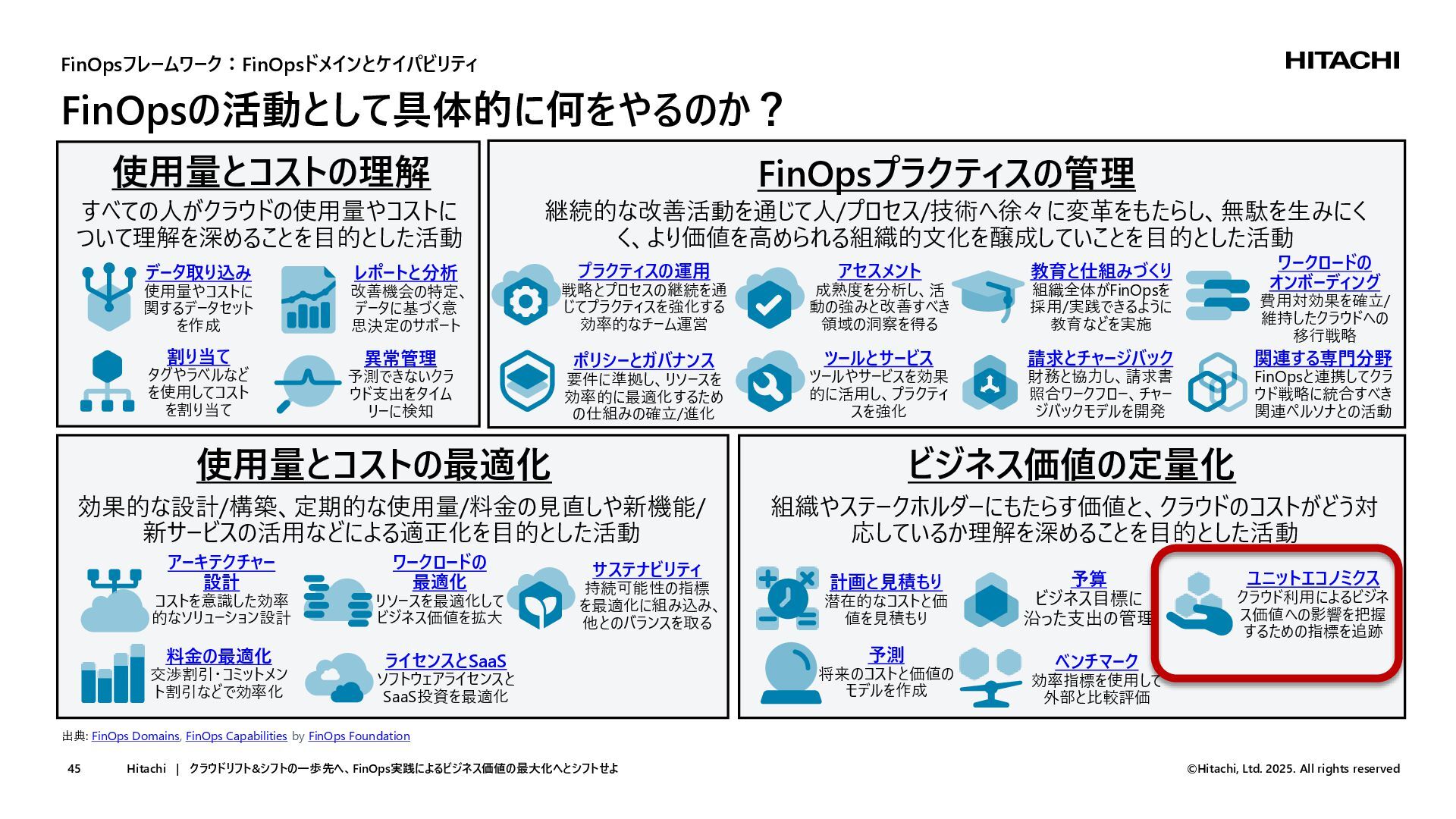 グローバルでは"単なるクラウドの利用"を脱却し、ビジネス価値を最大化するための"FinOps"の実践が当たり前となりつつあり、最近ではFinOpsの取り組みをAI投資価値の最大化にも活かす企業が増えています。本セッションではクラウド・生成AI時代のITガバナンスを実現する手法として、FinOpsの概要から業界標準の実践アプローチ手法まで紹介します。