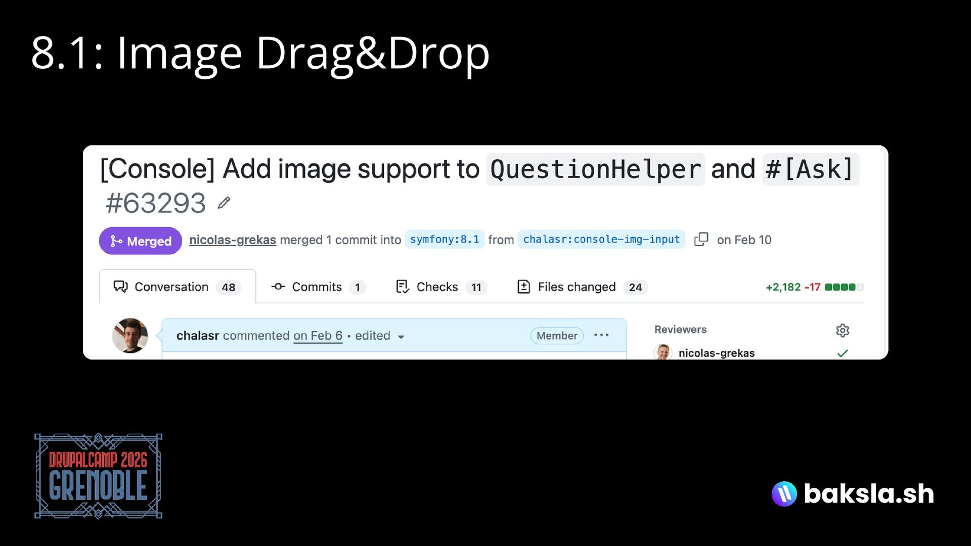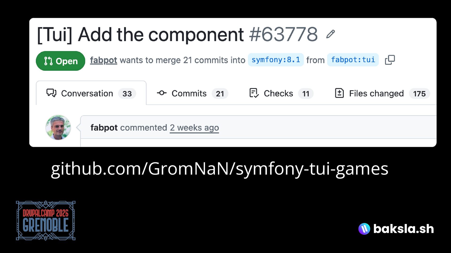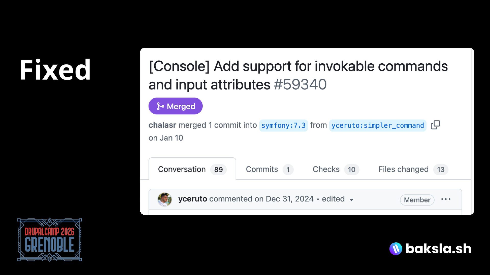 Today, the Console is getting a makeover. A few key contributors have been working hard to rethink it from the ground up: eliminating long-standing limitations and unlocking new possibilities. Kicked off in Symfony 7.3, this transformation will reach its peak with version 8.1, releasing just days after AFUP Day 2026.