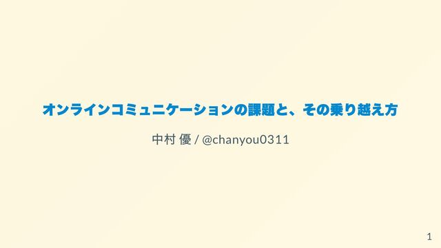 オンラインコミュニケーションの課題と、その乗り越え方 中村 優 / @chanyou0311 1