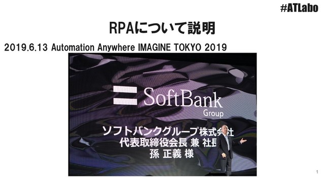 #ATLabo RPAについて説明 1 2019.6.13 Automation Anywhere IMAGINE TOKYO 2019