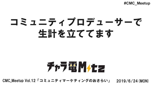 コミュニティプロデューサーで 生計を立ててます CMC_Meetup Vol.12「コミュニティマーケティングのおさらい」 2019/6/24(MON) #CMC_Meetup