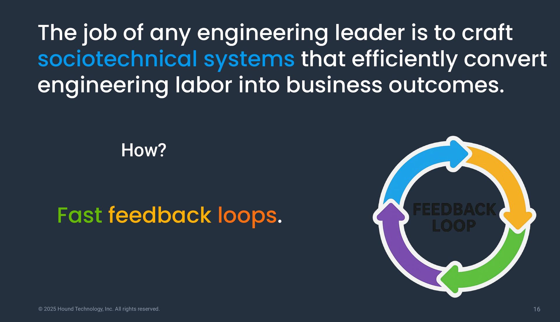 job of any engineering leader is to craft sociotechnical systems that efficiently convert engineering labor into business outcomes. How? Fast feedback loops.