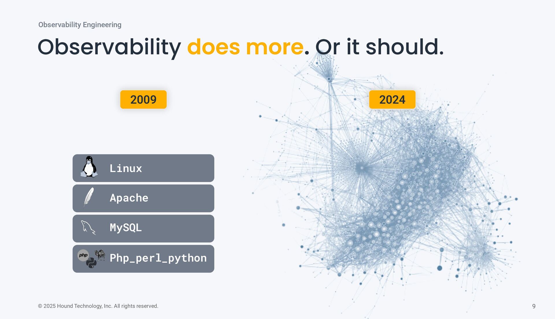 does more. Or it should. Observability Engineering 2009 2024 Linux Apache MySQL Php_perl_python