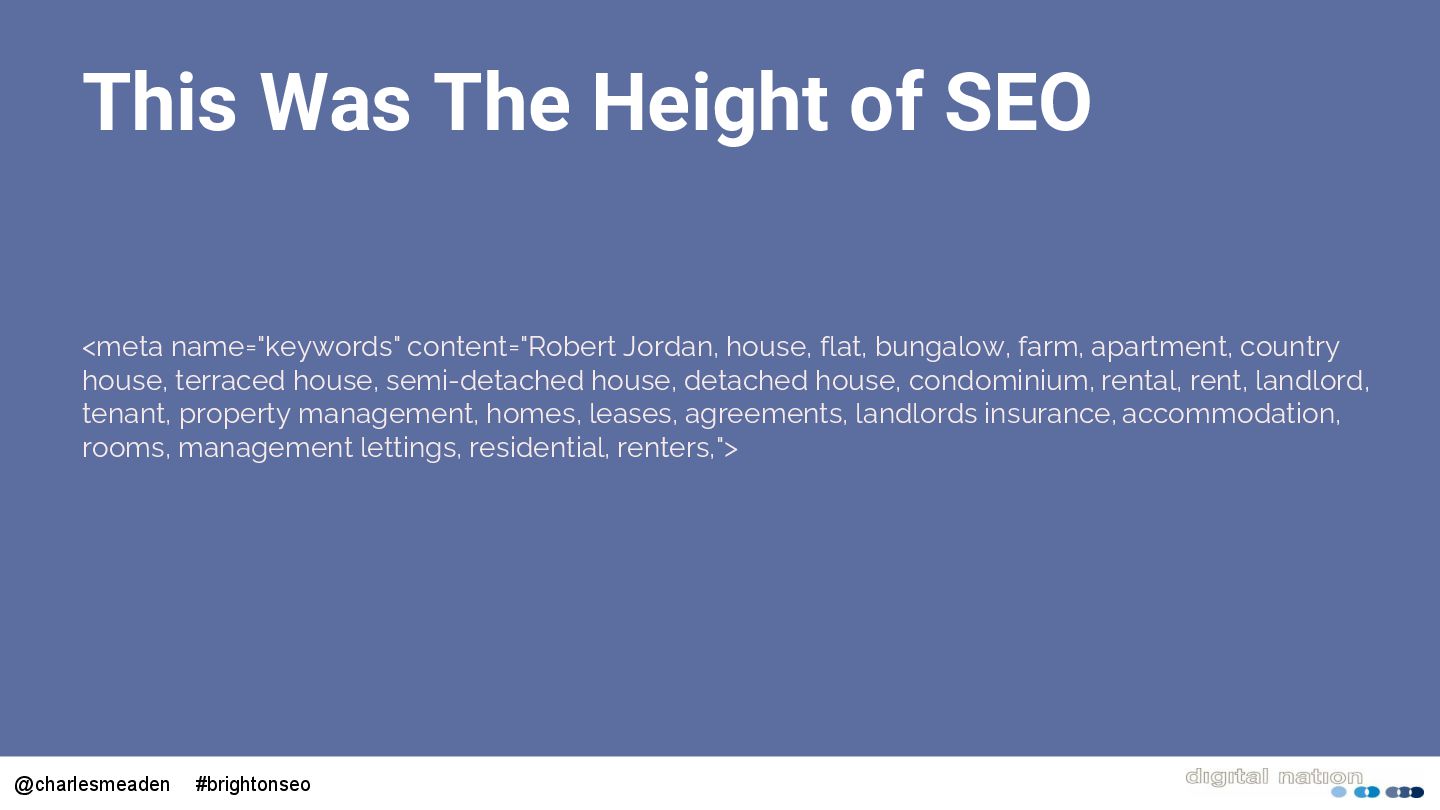 1. @charlesmeaden #brightonseo This Was The Height of SEO <meta name="keywords"
