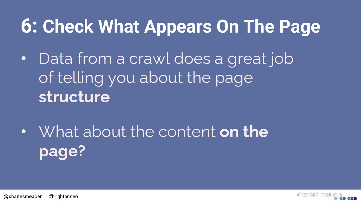 6. @charlesmeaden #brightonseo 6: Check What Appears On The Page •