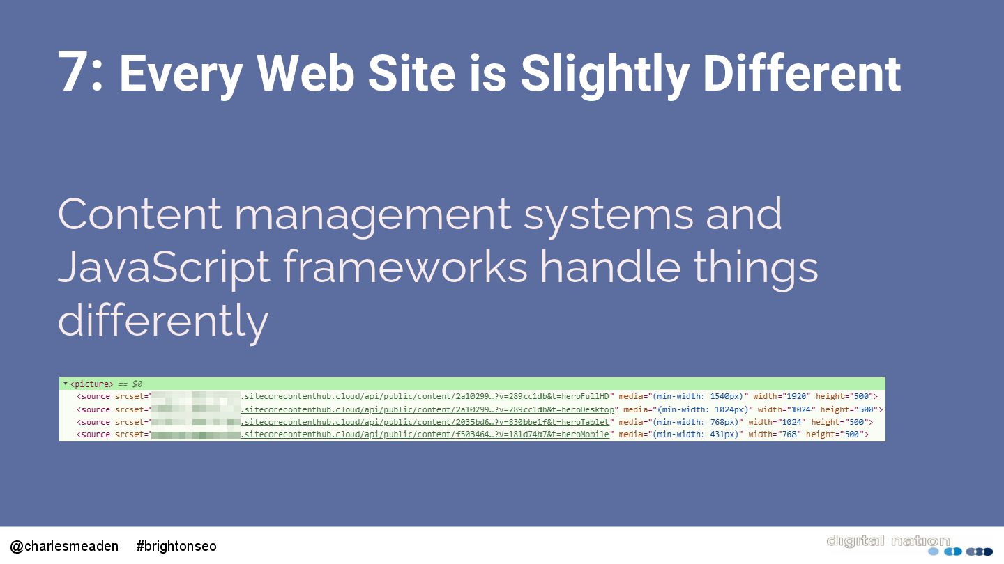 8. @charlesmeaden #brightonseo 7: Every Web Site is Slightly Different Content